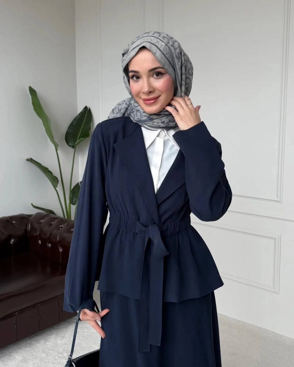 Ayel Kuşaklı Etekli Takım - Lacivert