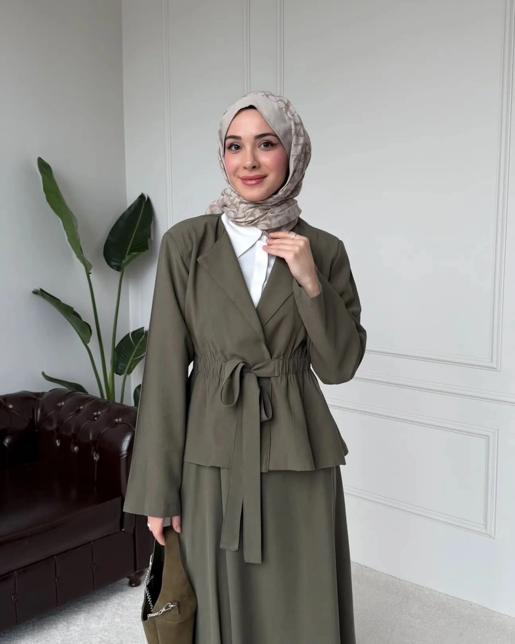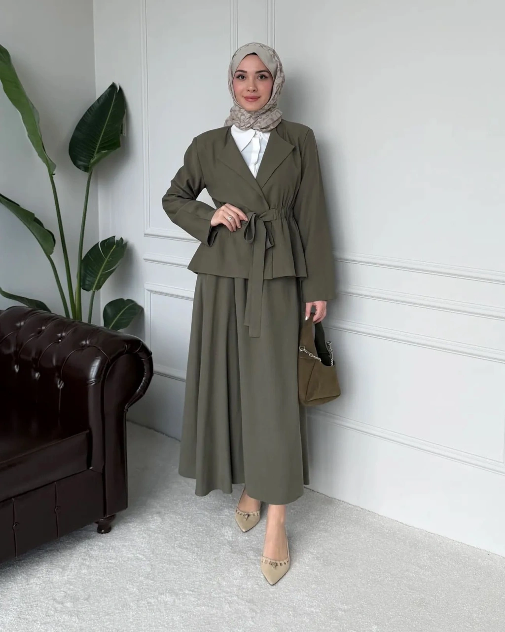 Meyra Kuşaklı Şık Takım - Kahverengi