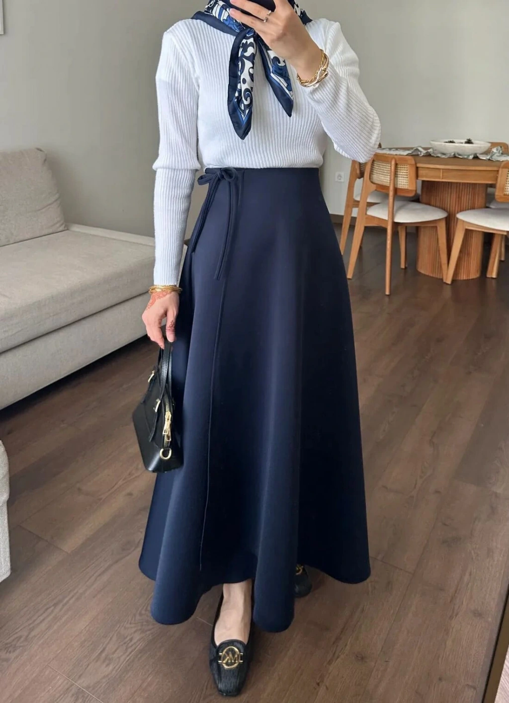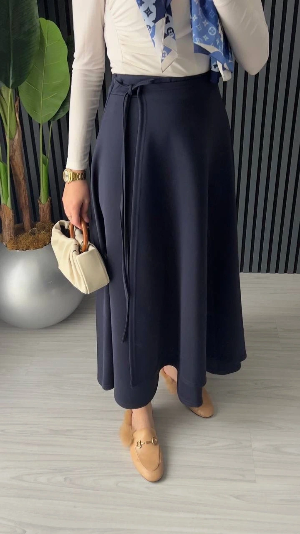 Belden Bağlamalı Scuba Etek - Lacivert