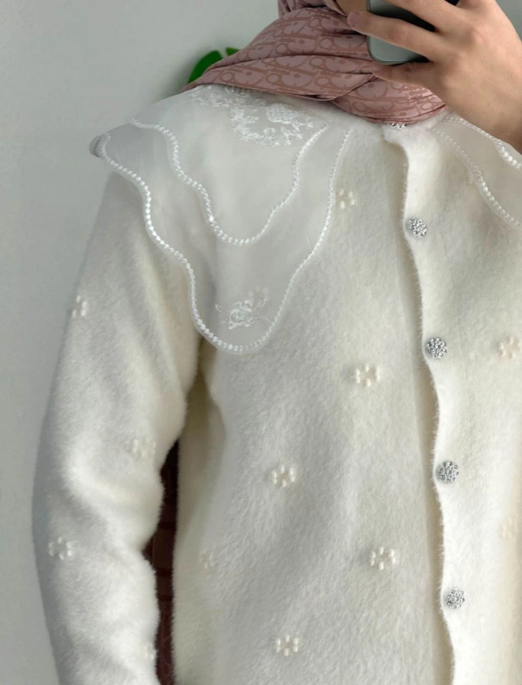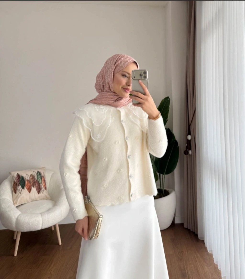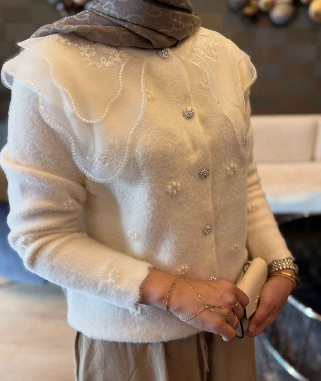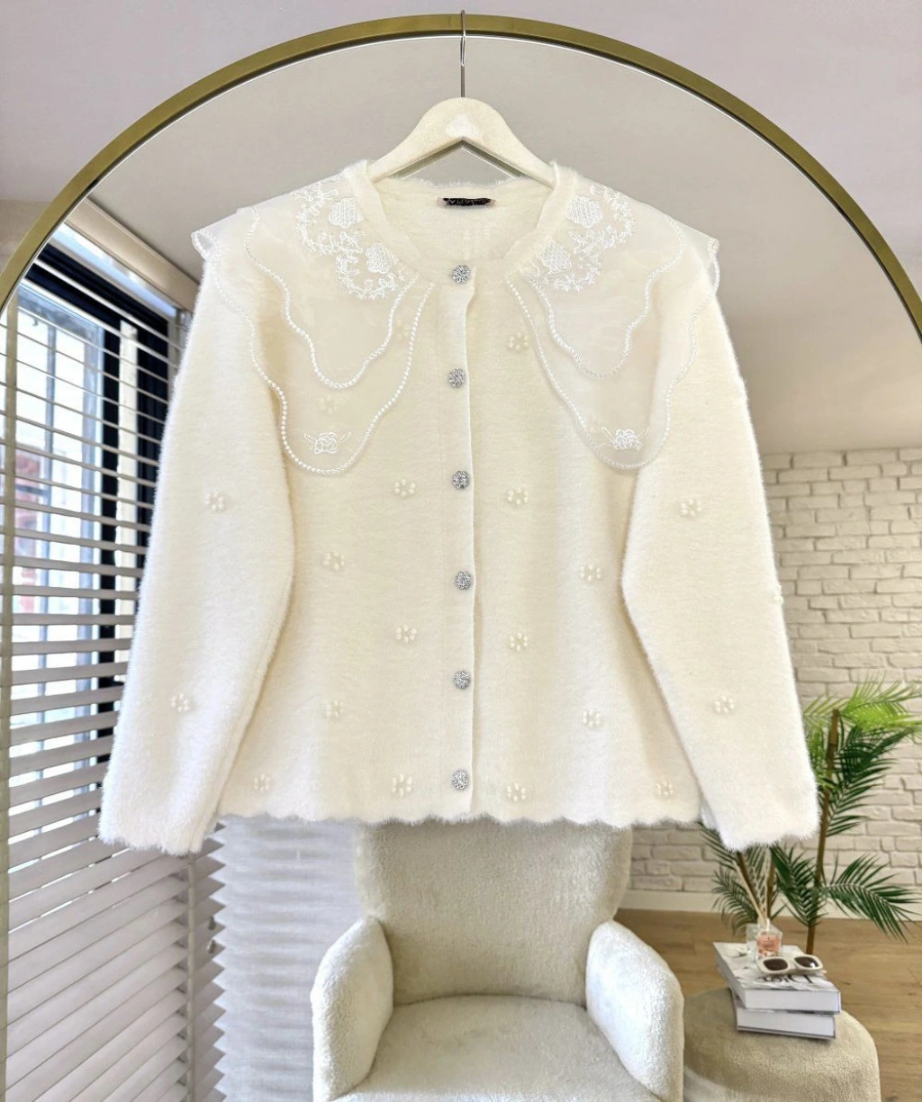 Dantel Yaka Angora Hırka