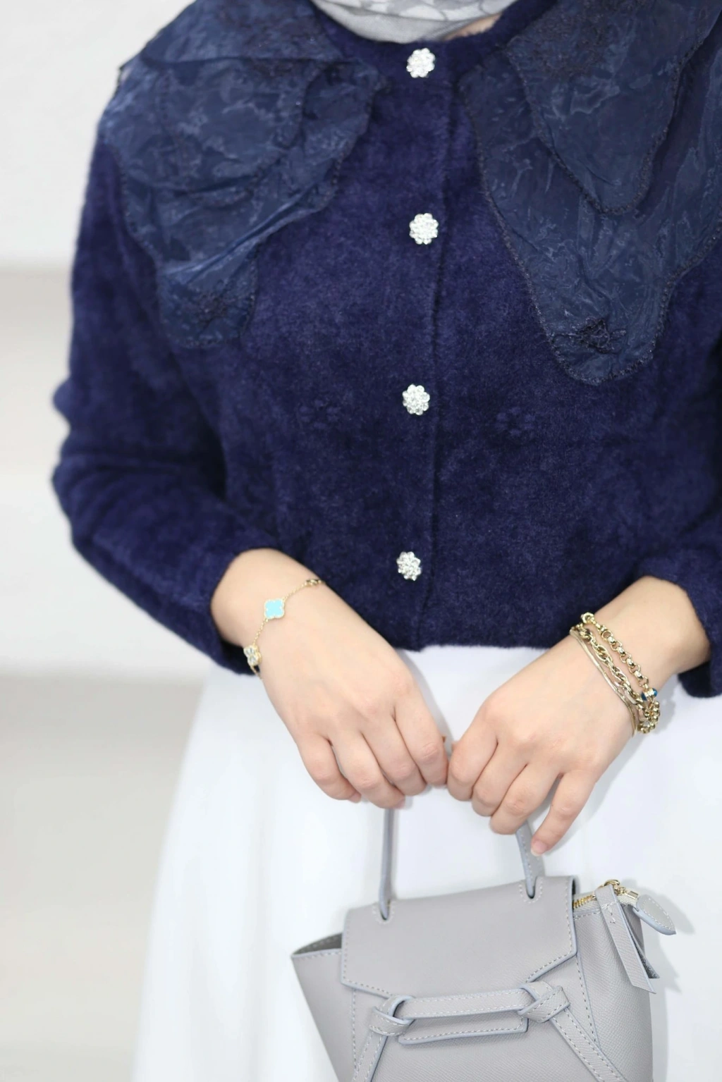Dantel Yaka Angora Hırka - Lacivert