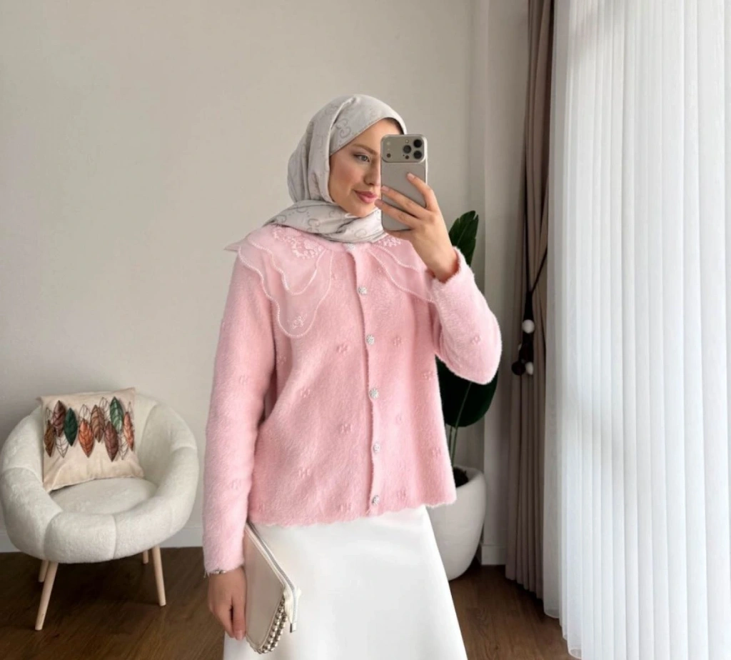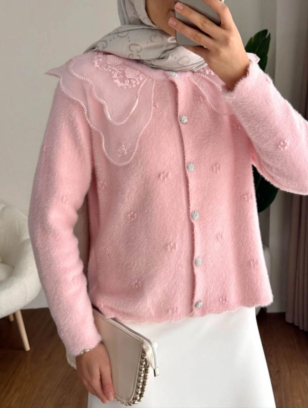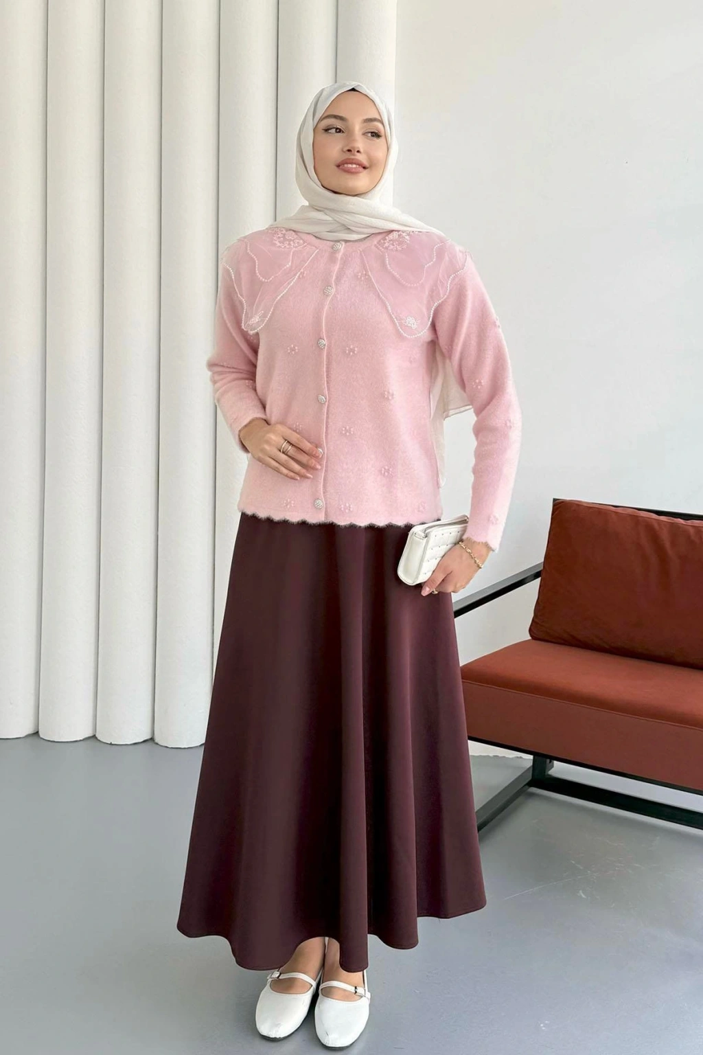 Kurdela Fiyonklu Triko Hırka - Kahverengi