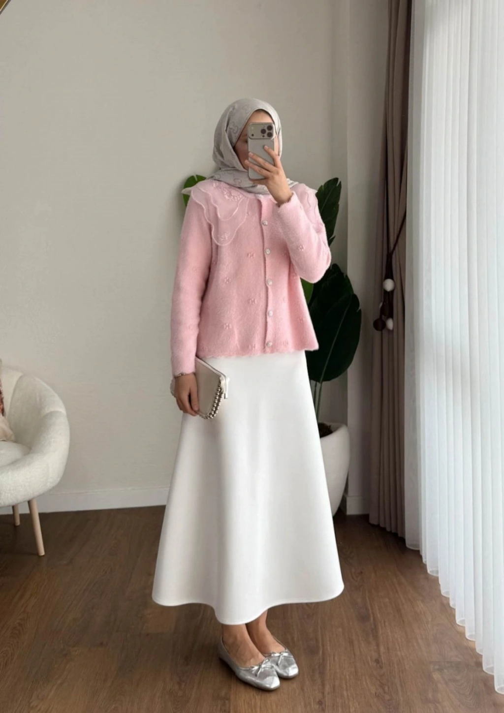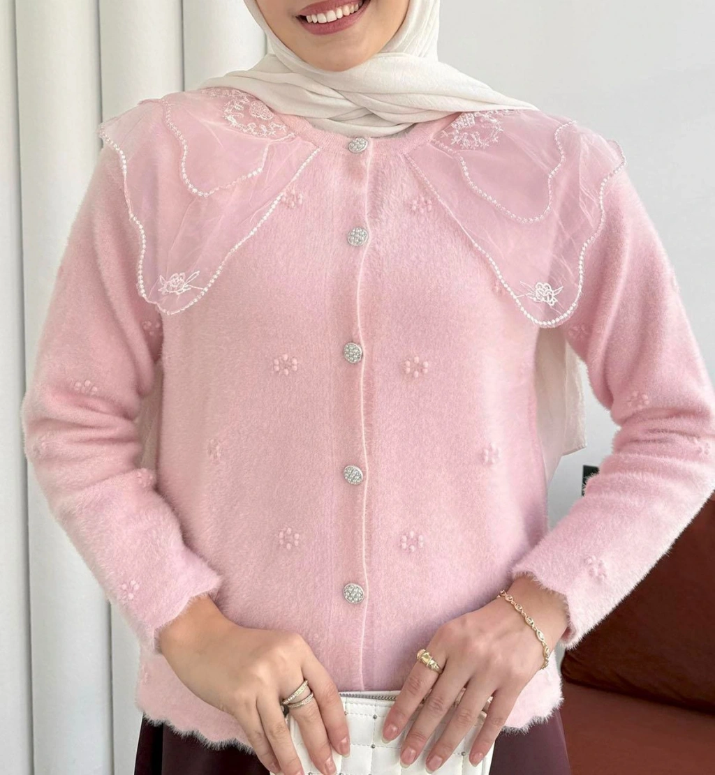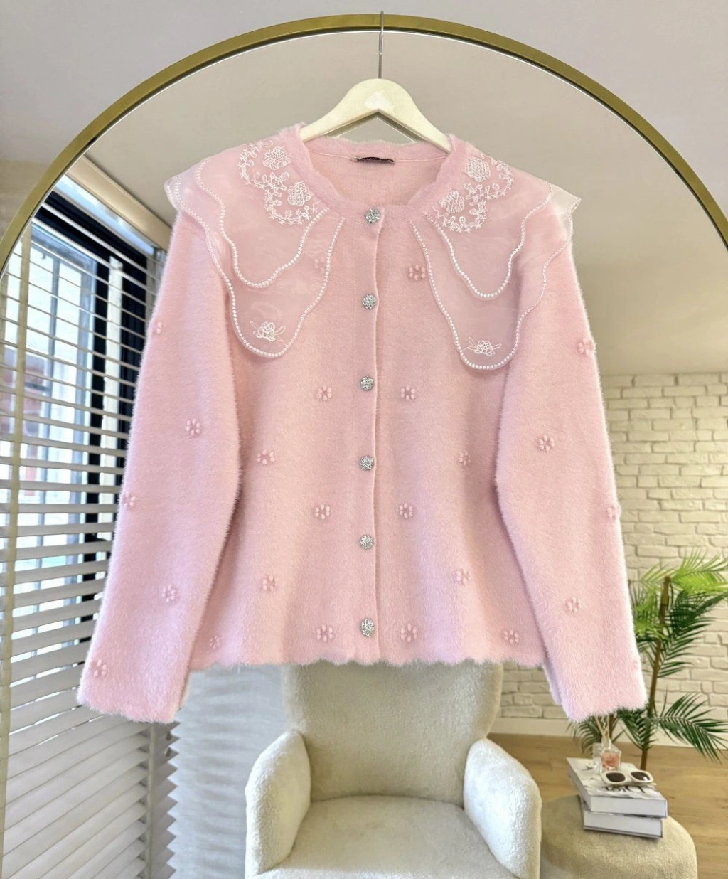 Kurdela Fiyonklu Triko Hırka - Kahverengi