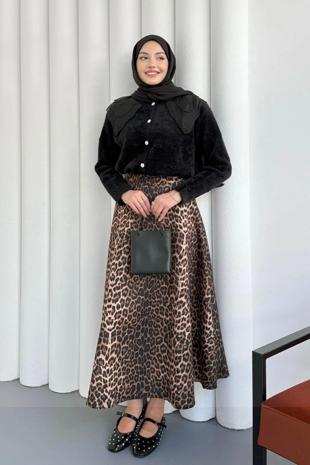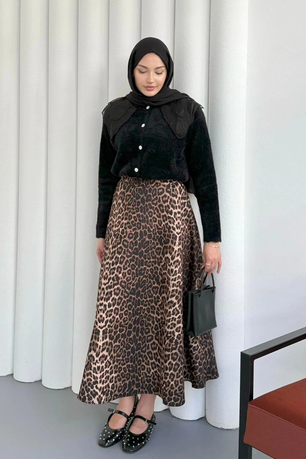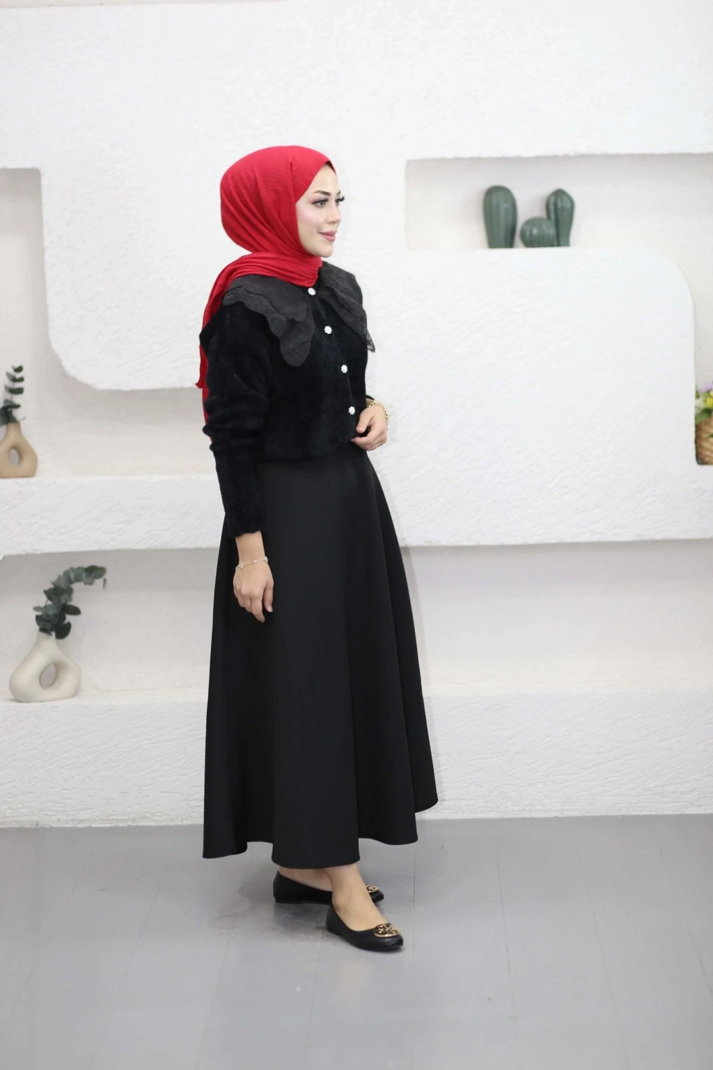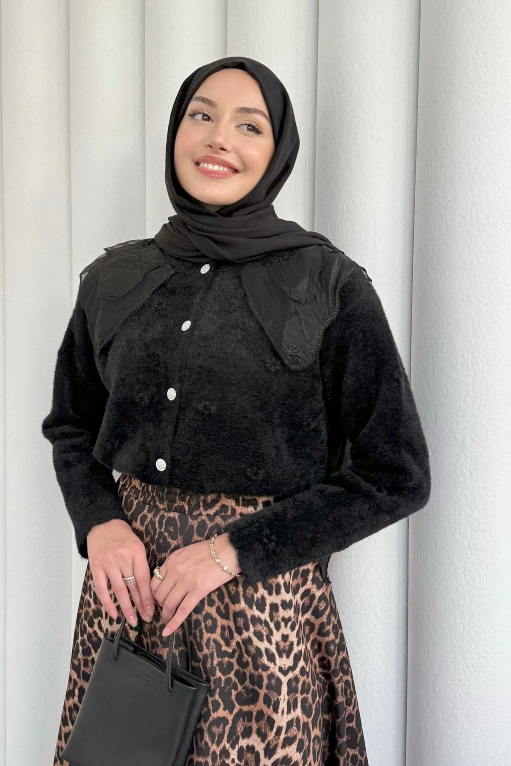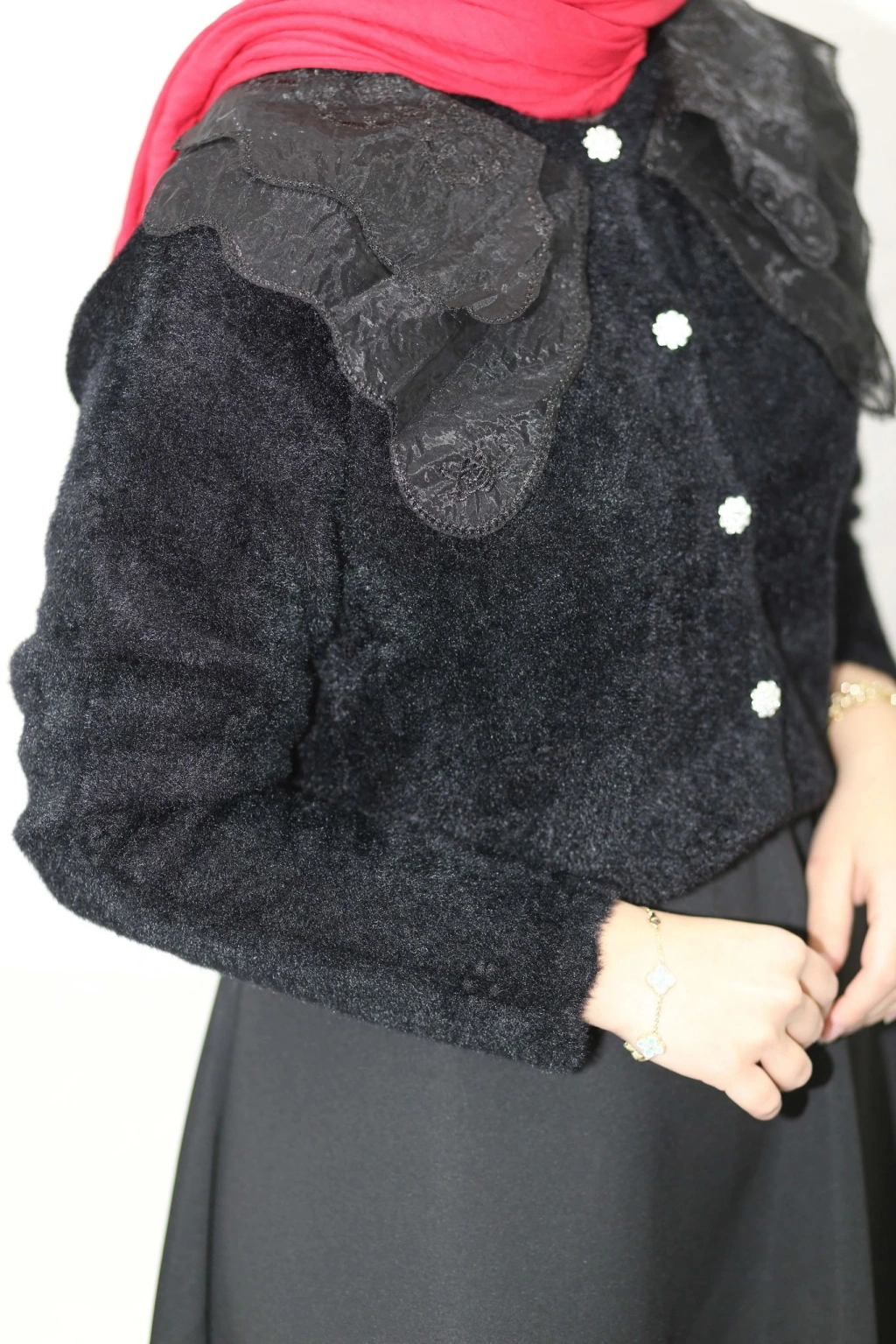 Dantel Yaka Angora Hırka - Siyah