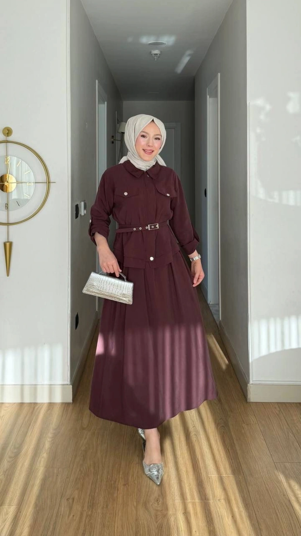Ece Çıtçıt Kapaklı Fermuarlı Kemerli Etekli Takım - Bordo