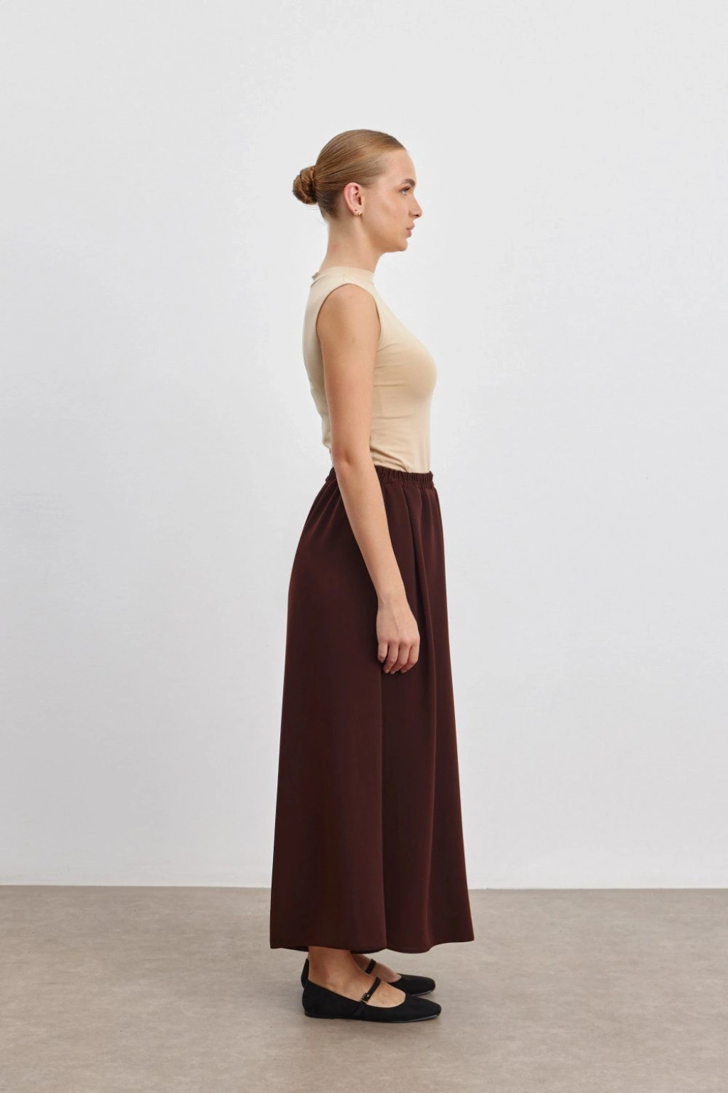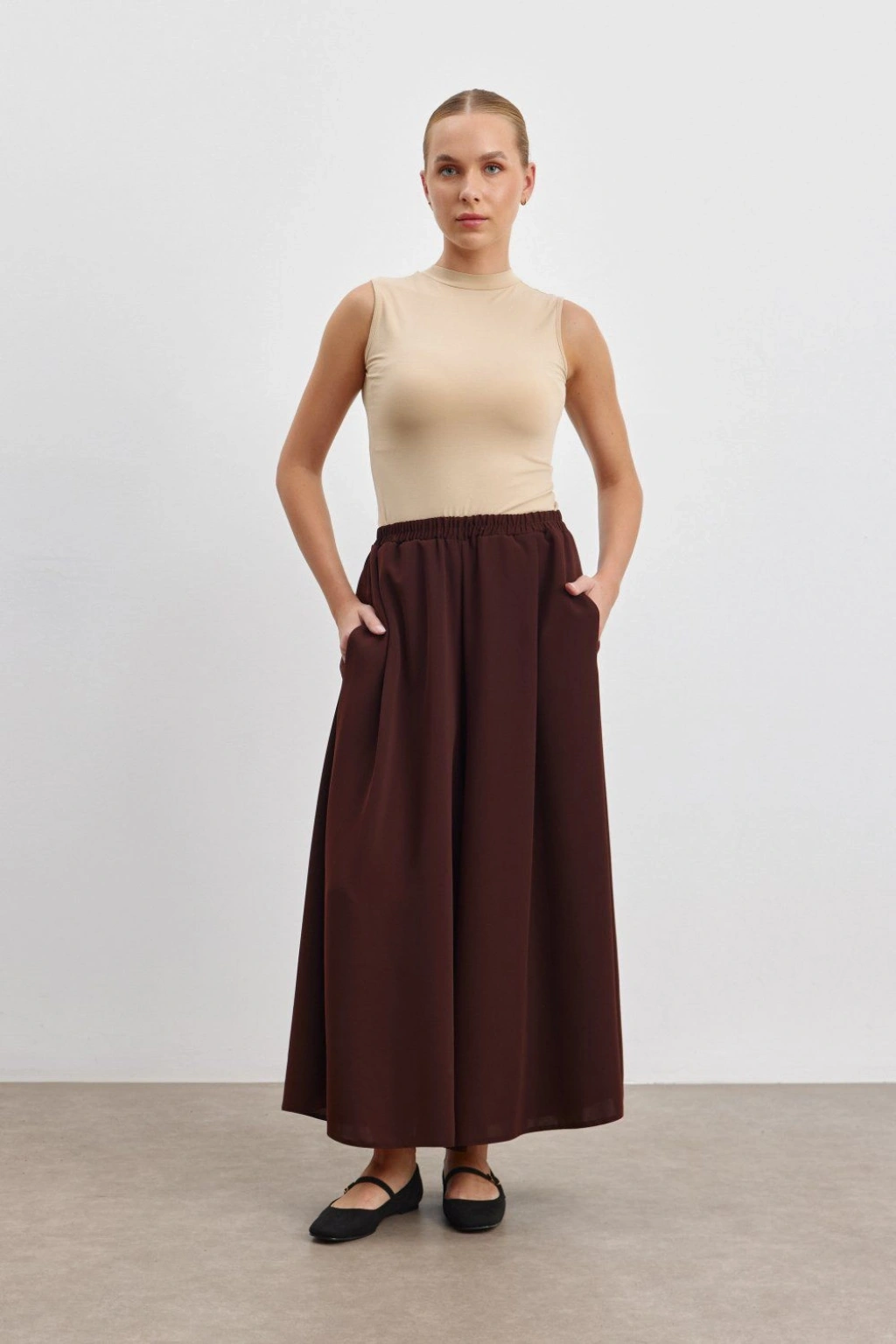 Güpür Detaylı Asimetrik Kesim Tül Etek - Kahverengi