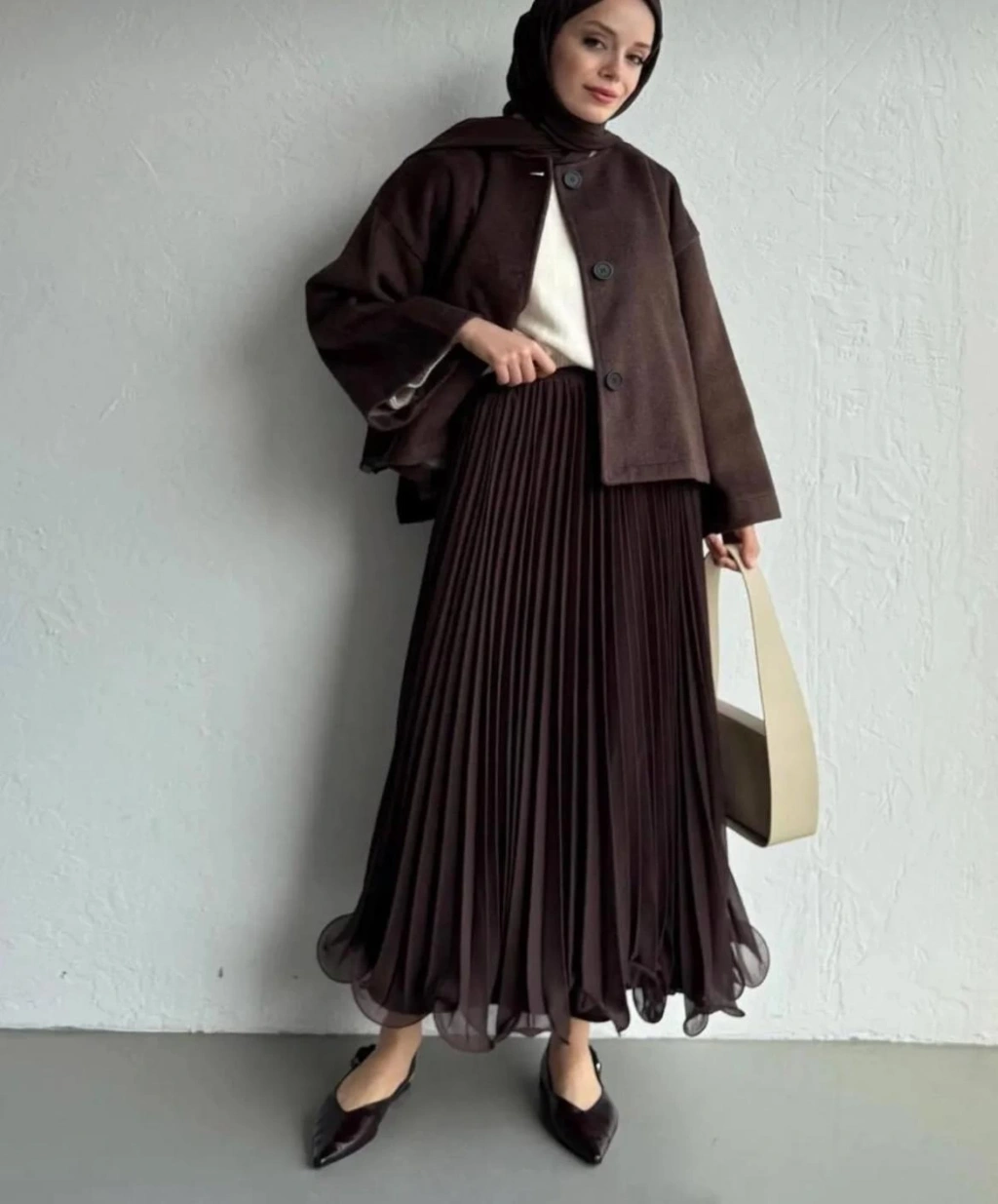 Etek Ucu Misinalı Piliseli Şifon Etek