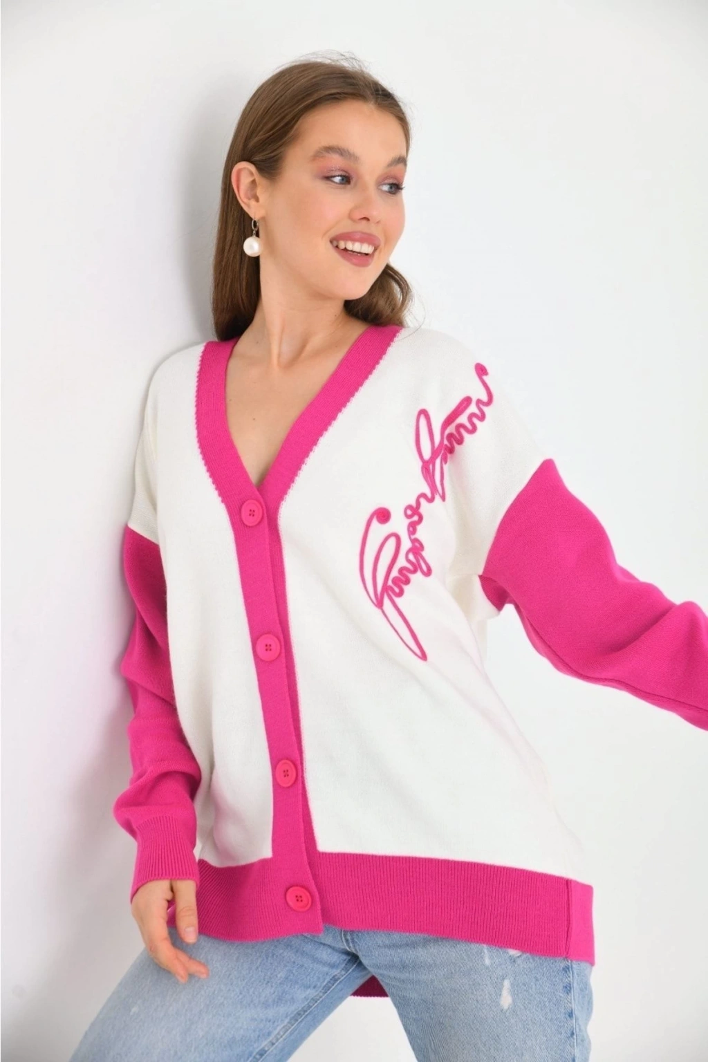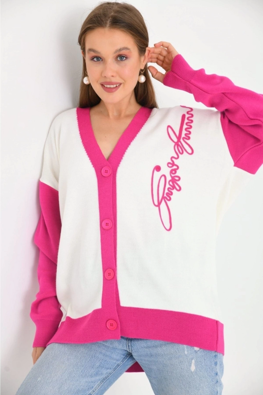 Triko Hırka ; İmza desen işlemeli ; Boy 75cm;