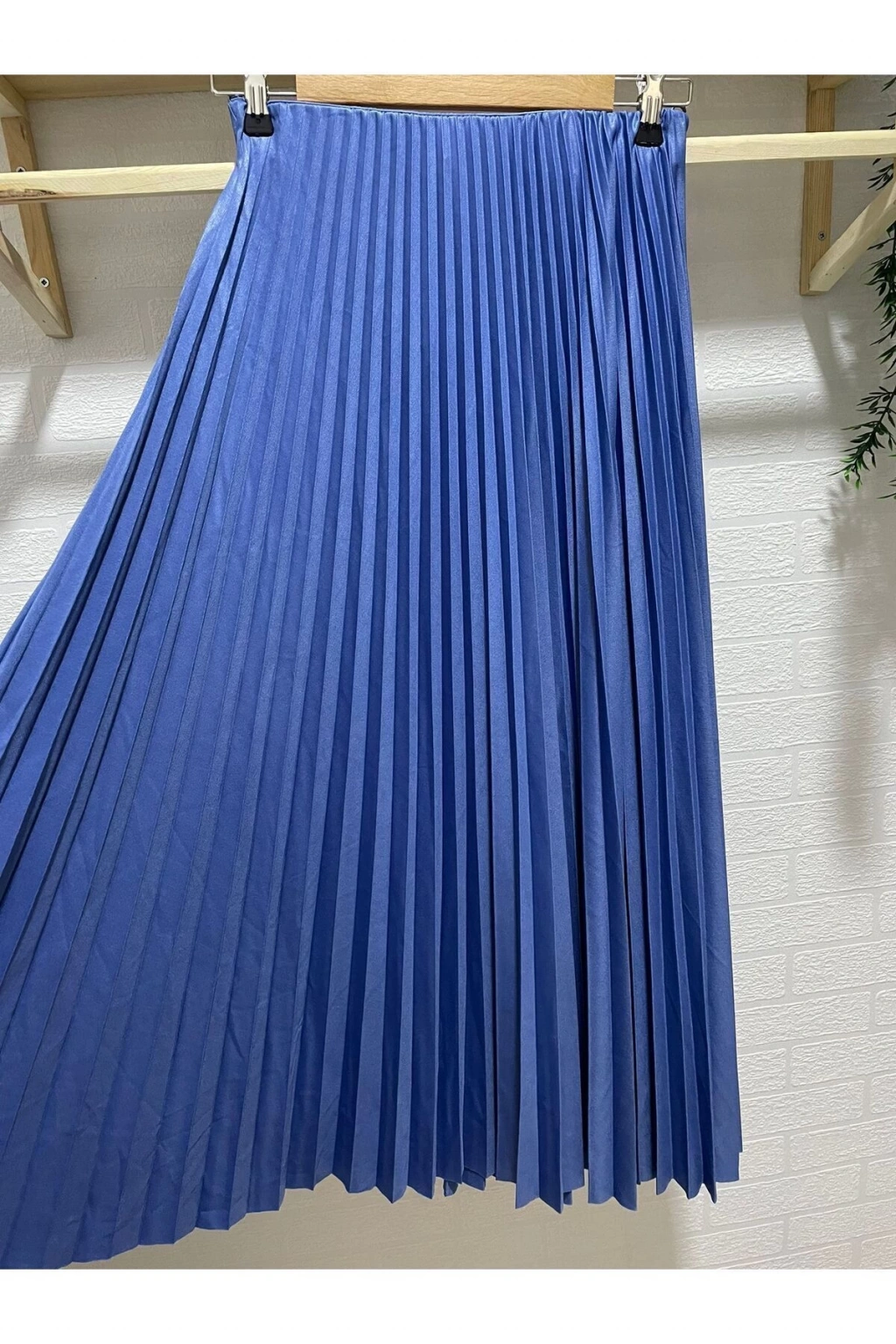 Sık piliseli deri görünümlü piliseli etek ; Standart beden beli lastiklidir ; 36-42 beden arası uyumludur ; Boy 87-90cm ; Astarsız yazlık ince kumaş ;