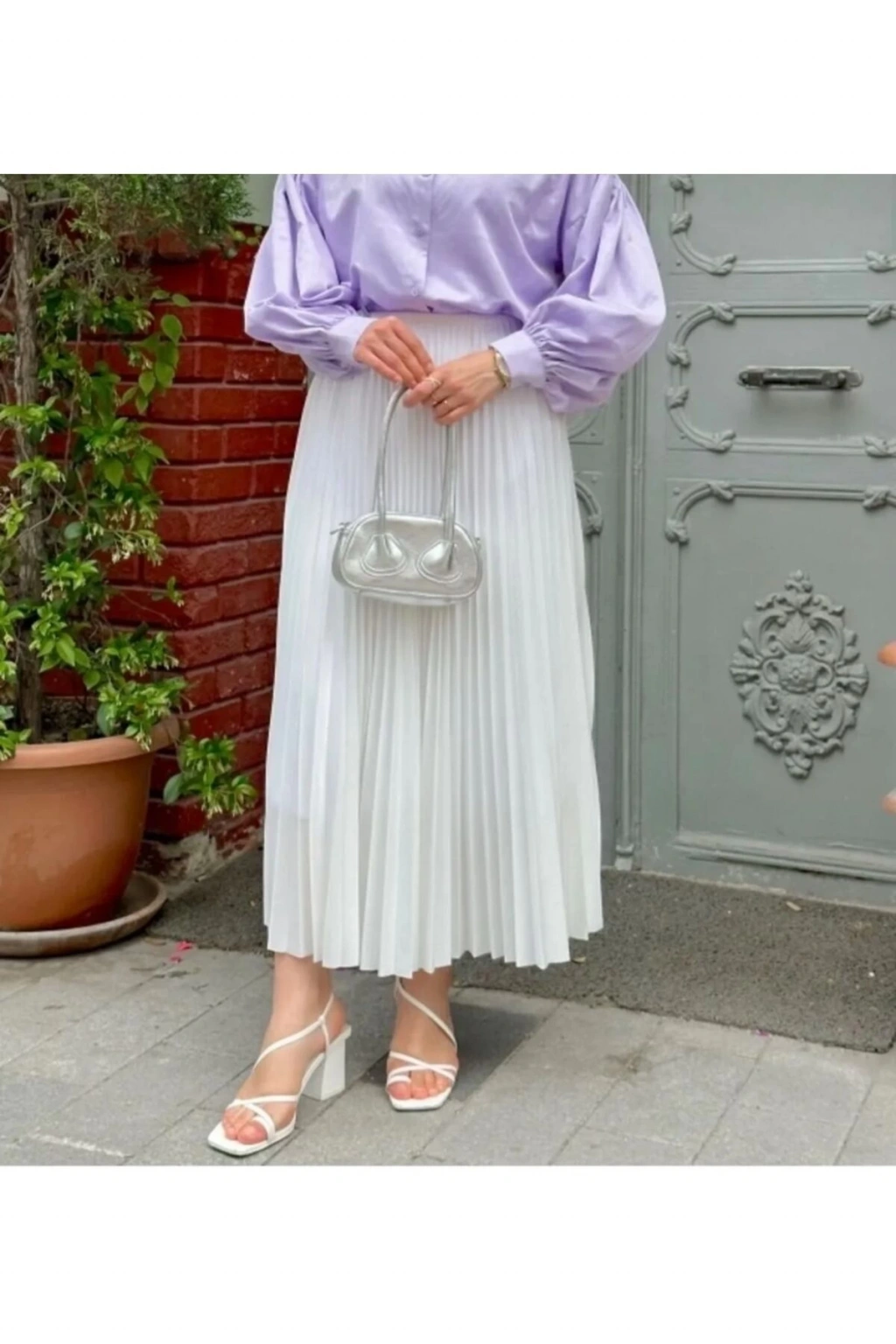 Sık piliseli deri görünümlü piliseli etek ; Standart beden beli lastiklidir ; 36-42 beden arası uyumludur ; Boy 87-90cm ; Astarsız yazlık ince kumaş ;