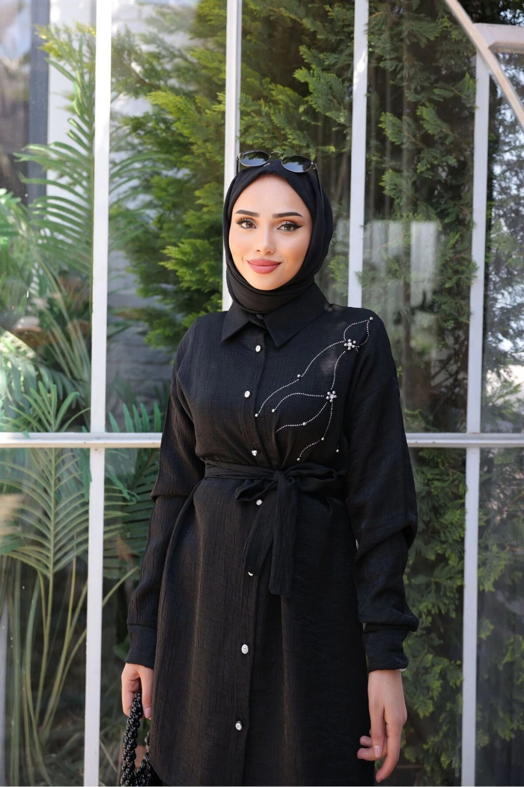 Günlük kullanıma uygun tasarımıyla rahatlığı ve şıklığı bir arada sunan tesettür ikili takım; Lastiksiz paça kesimi sayesinde gün boyu konforlu bir kullanım sağlar; Kırışmaya dayanıklı kumaşı ile bakımı kolay ve şık görünümün korunmasına yardımcı olur; Regular silueti, her vücut tipine uyum sağlayarak rahat bir oturuş sunar; Tüm yaş gruplarına hitap eden tasarımıyla geniş bir kullanıcı yelpazesine sahiptir; İnce yapısıyla hafif ve nefes alabilen bir yapıya sahiptir, sıcak havalarda bile serin tutar; Kuşak detayı bel bölgesini zarifçe vurgulayarak feminen bir siluet oluşturur; Tunikli pantolonlu alt; üst takım kombini, tesettür giyim tercihlerinizde pratik bir seçenek sunar; Uzun kollu tasarımı ile mevsim geçişlerinde ideal koruma sağlar; Pamuklu materyali cildinizle dost dokunuşlar sunarken konforlu bir deneyim vaat eder; Kırışık parlak kumaş bileşeni;