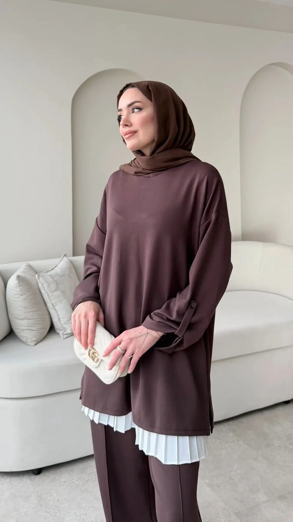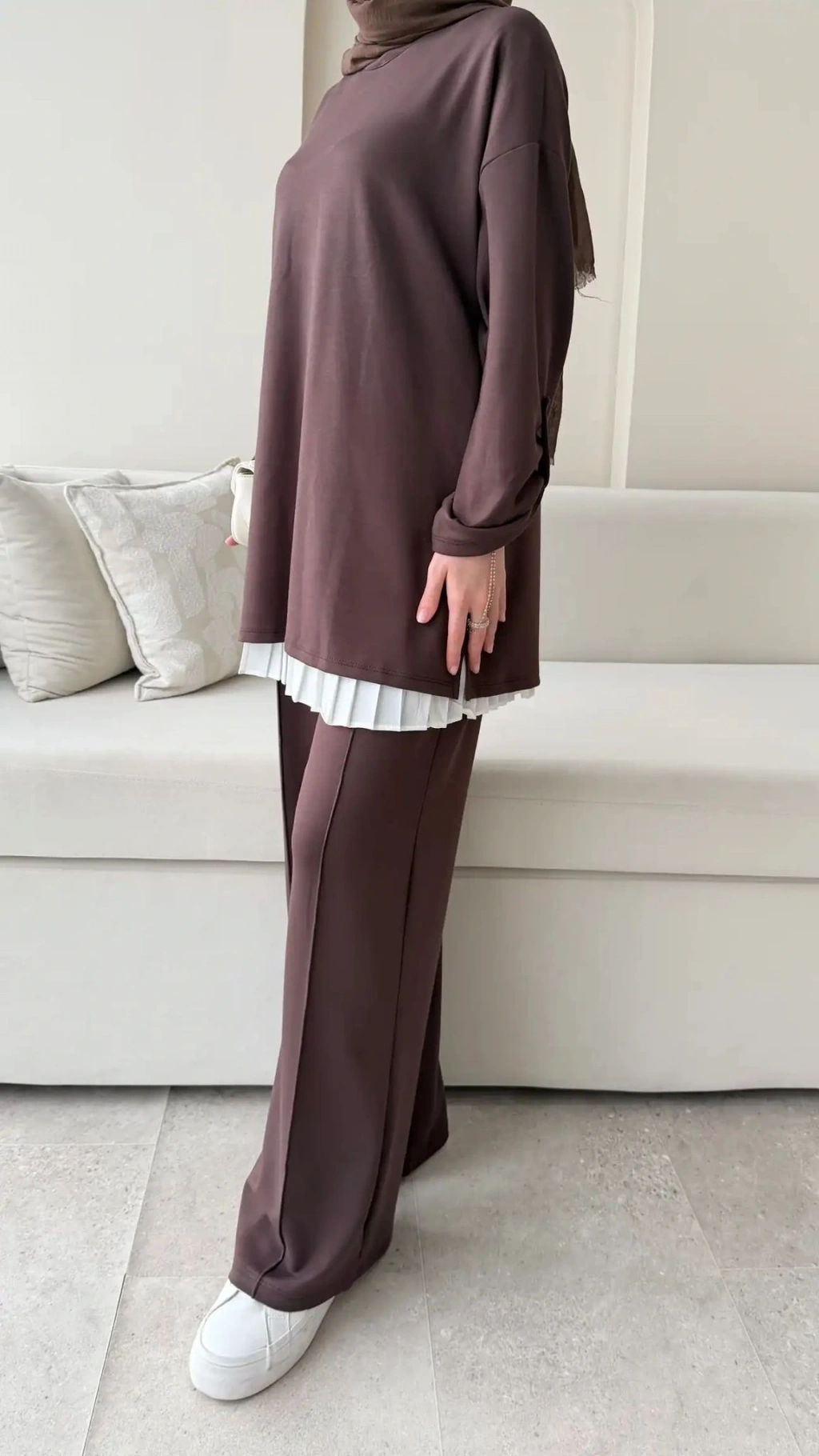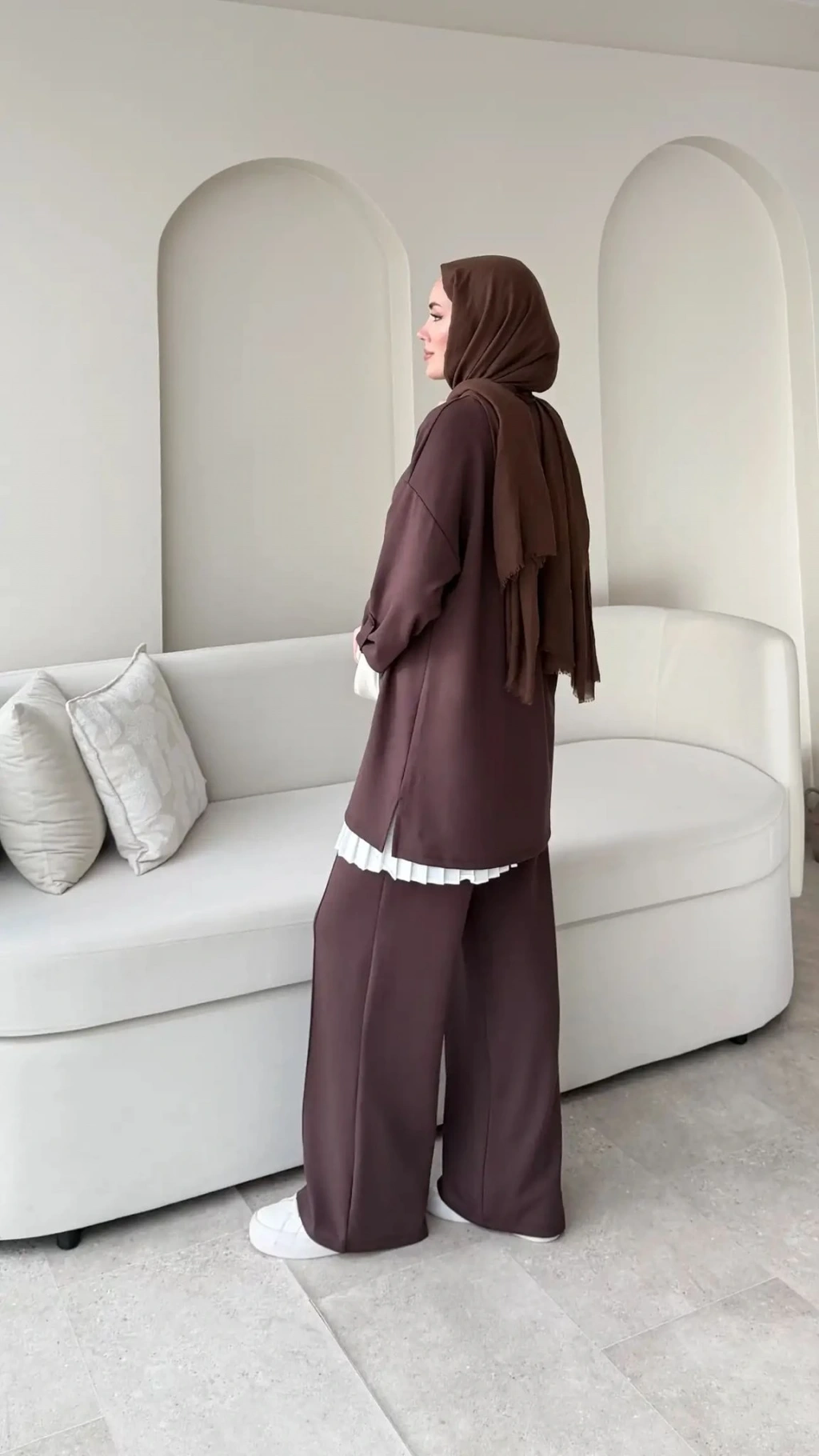 Kol Düğme Detaylı Takım - Kahverengi