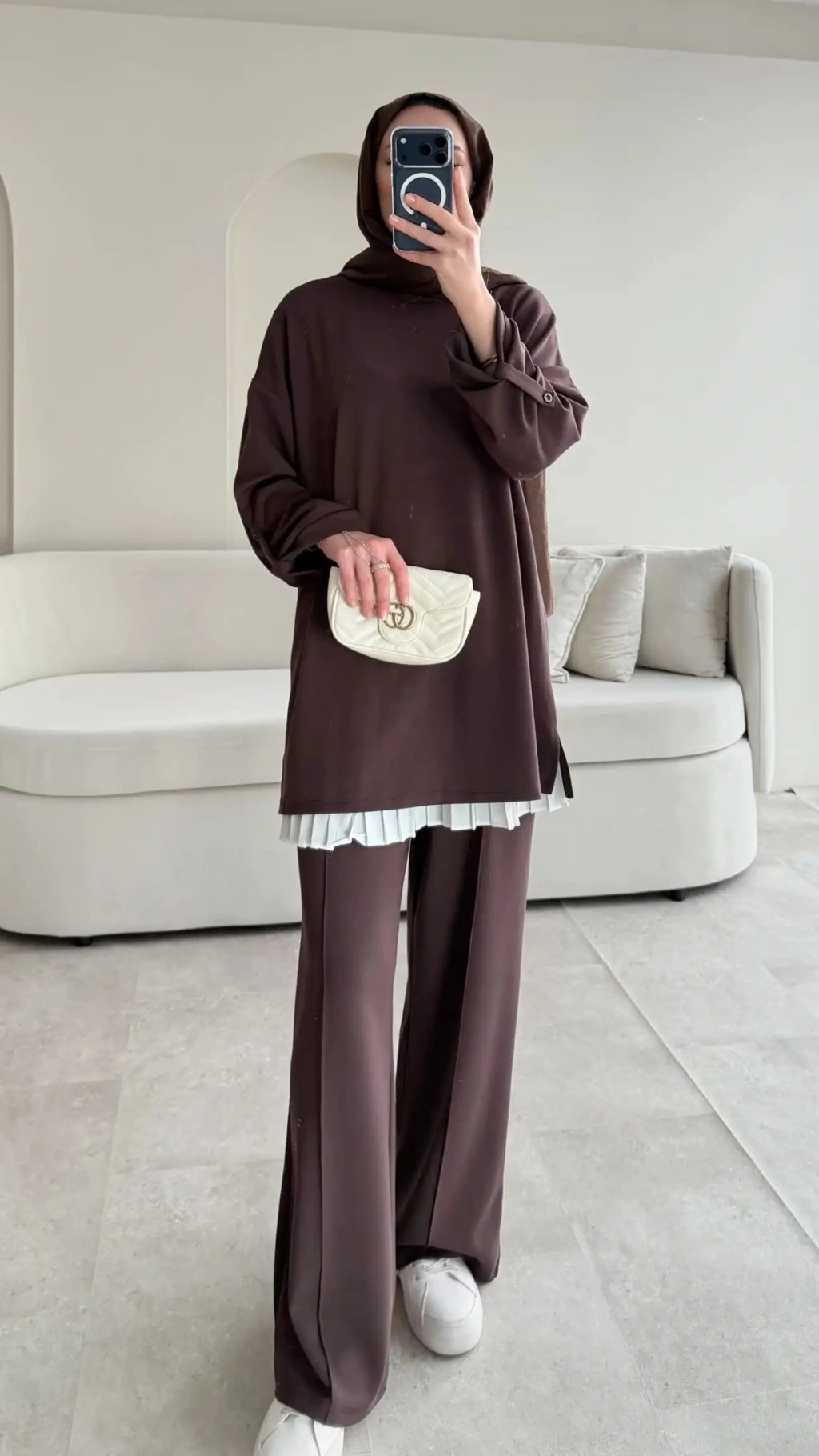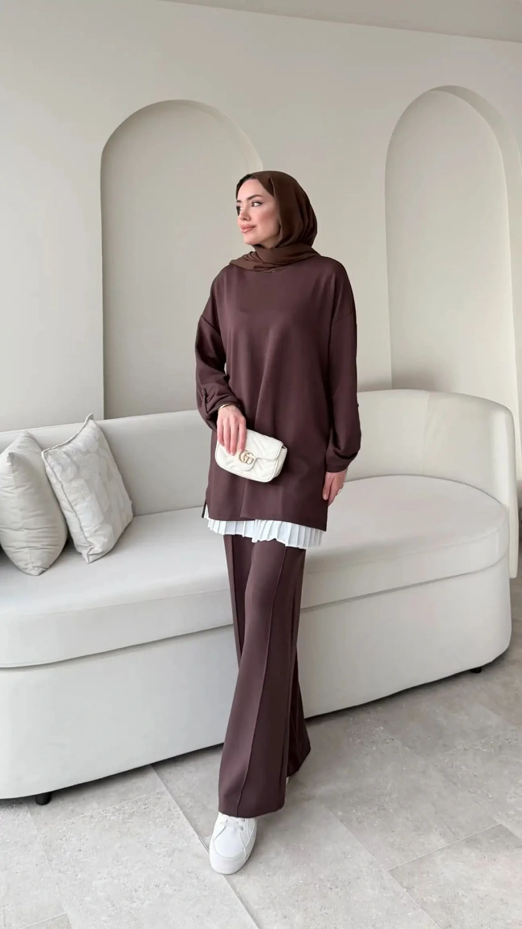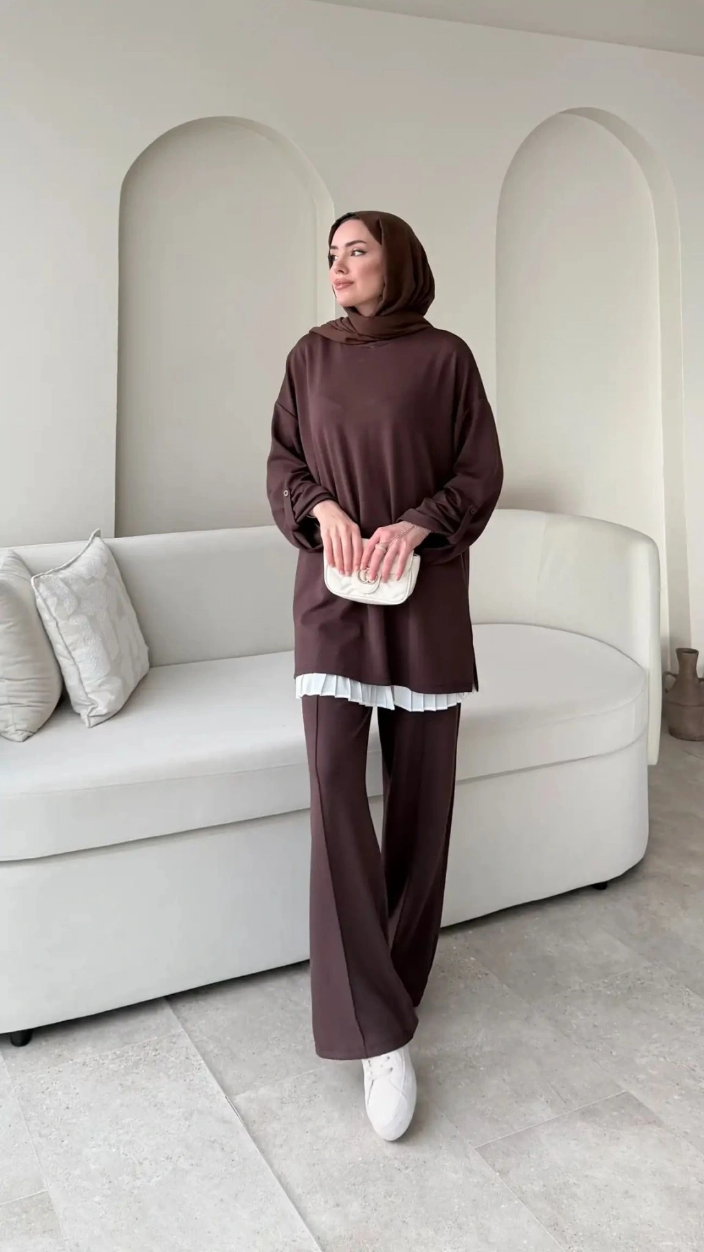 Kol Düğme Detaylı Takım - Kahverengi