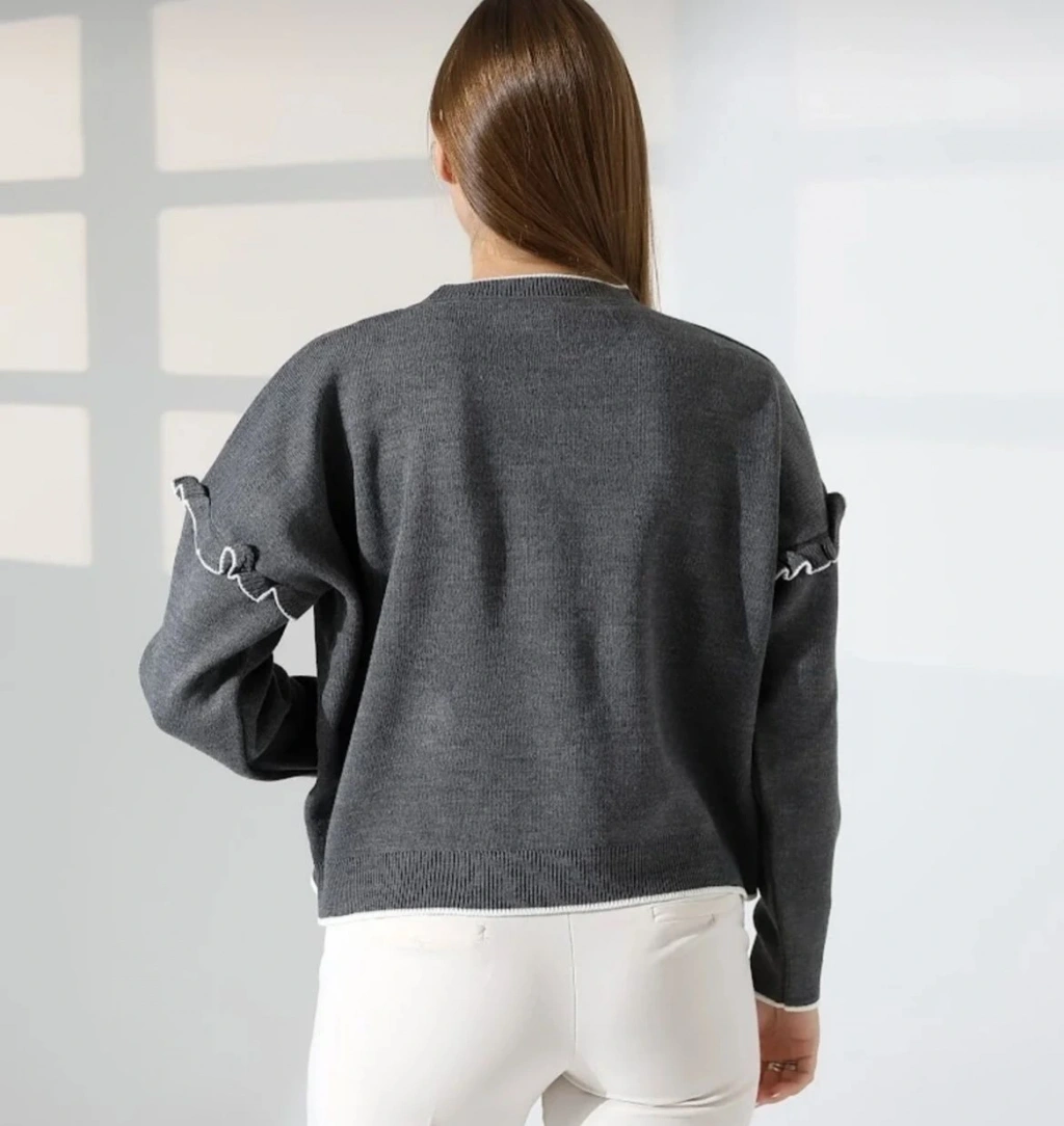 Kurdela Detaylı Triko Hırka, şıklığı ve konforu bir arada sunuyor.