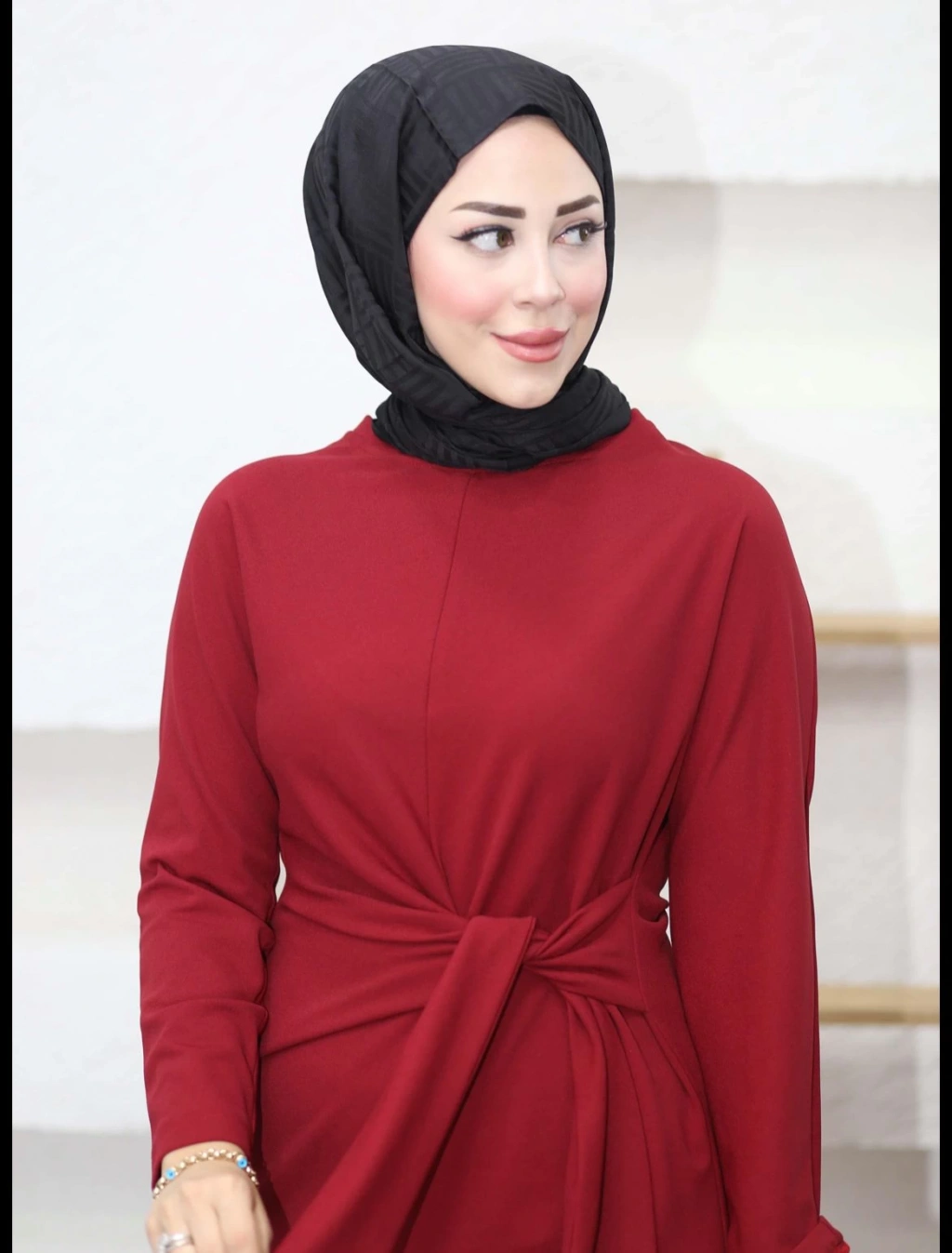 • Kuşak Bağlamalı Krep Elbise modeli, krep kumaştan üretilmiştir.