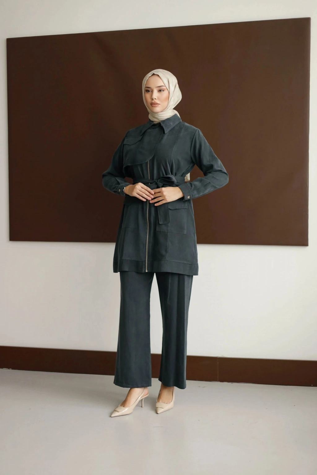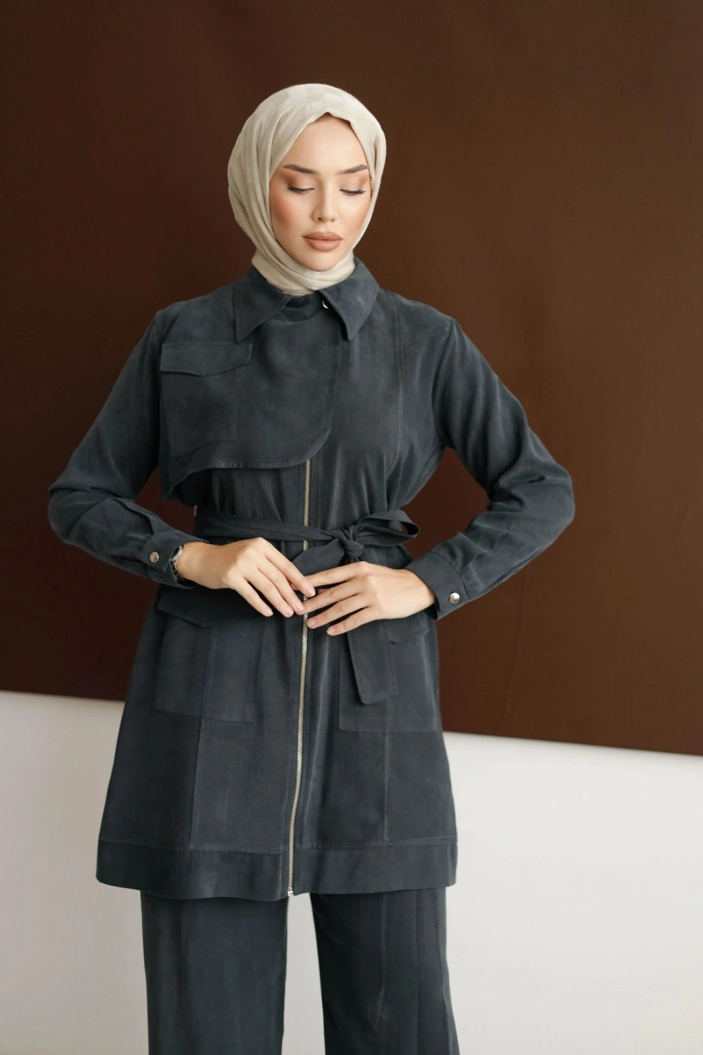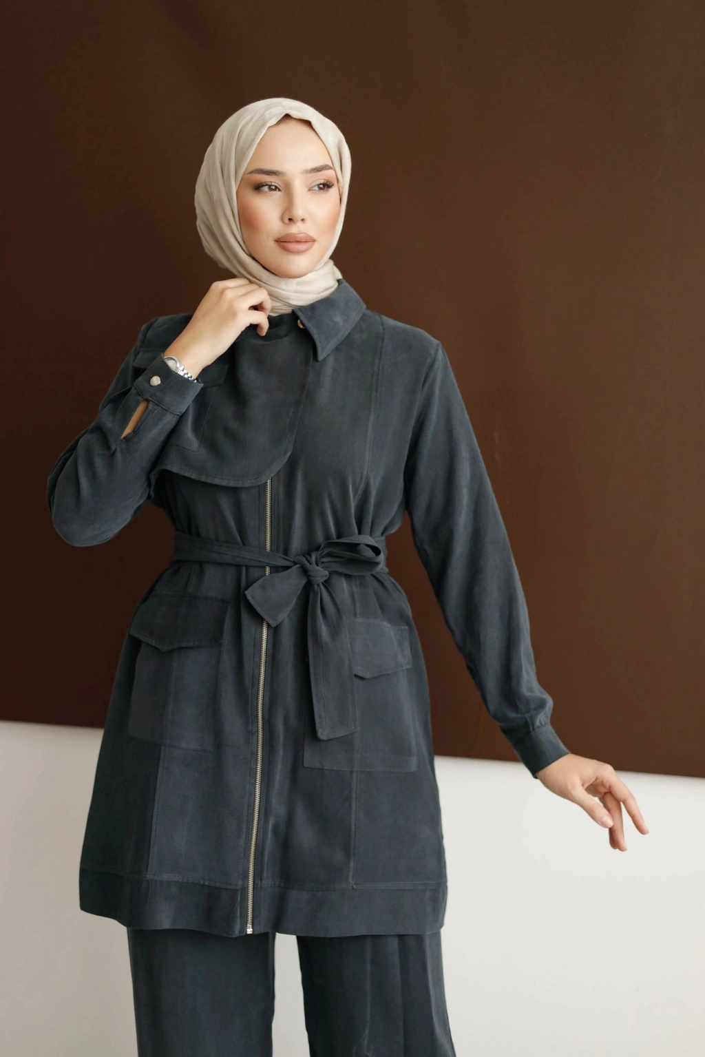 Meyra Kuşaklı Şık Takım - Kahverengi