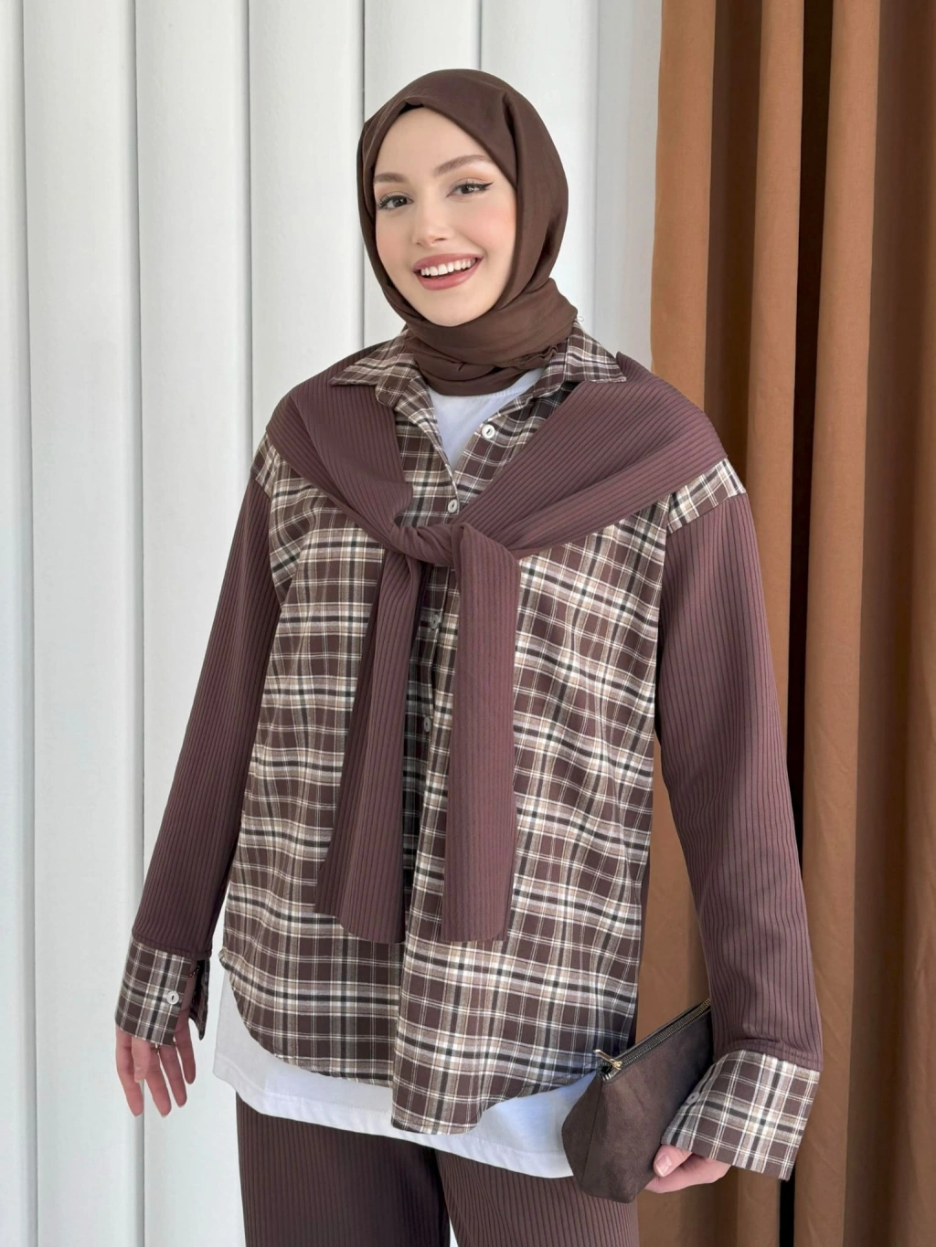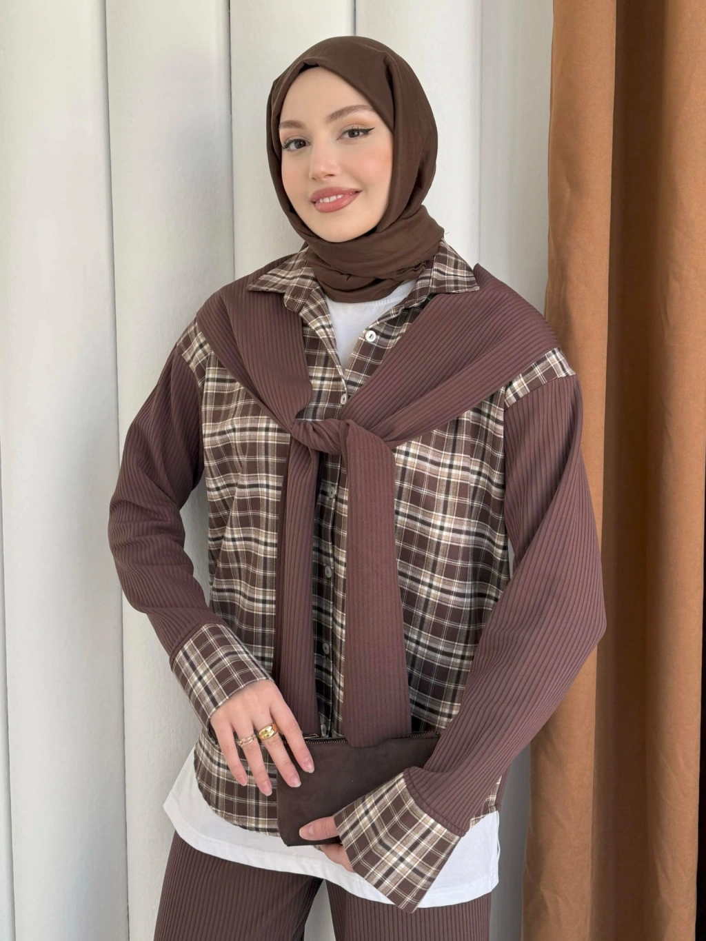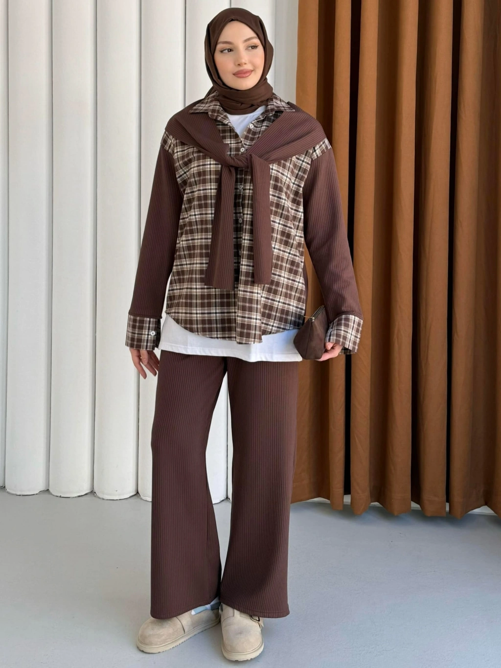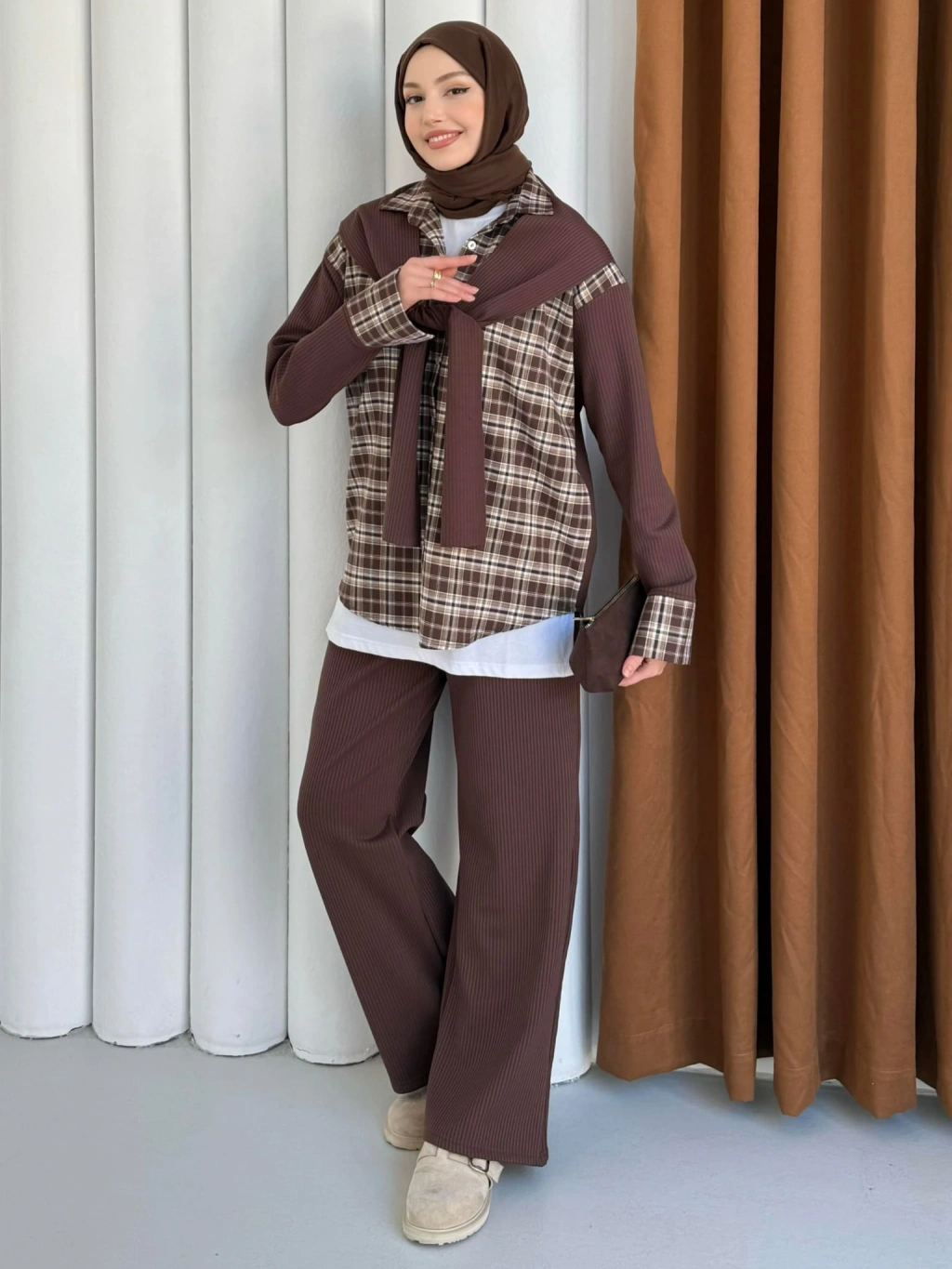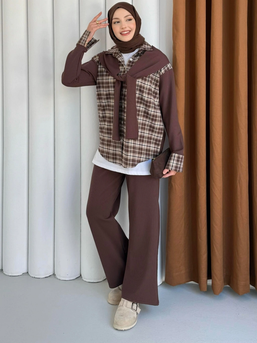 Meyra Kuşaklı Şık Takım - Kahverengi