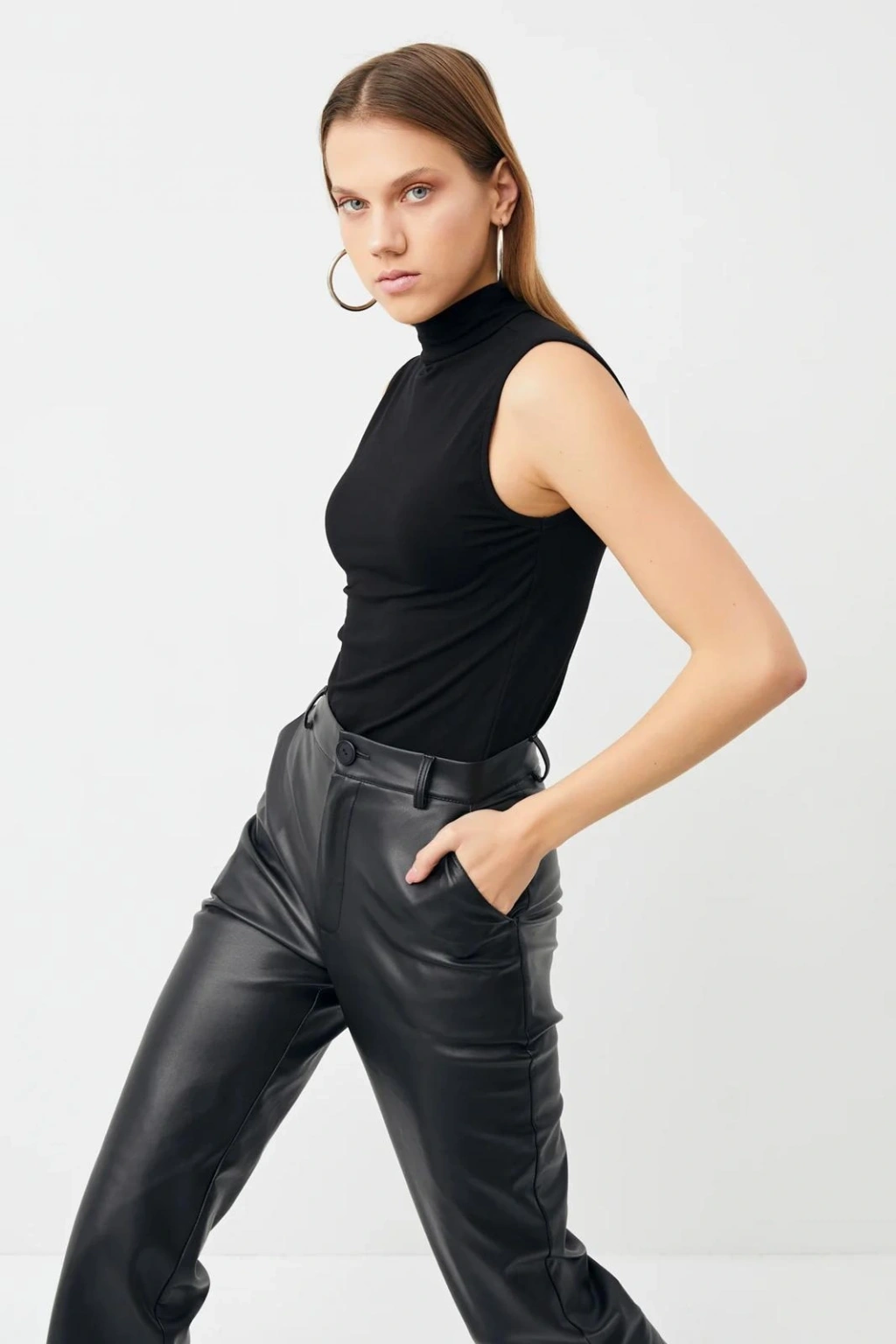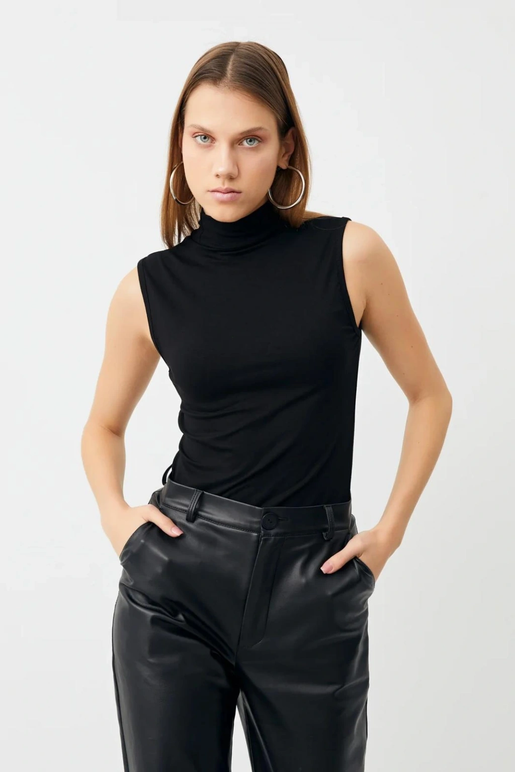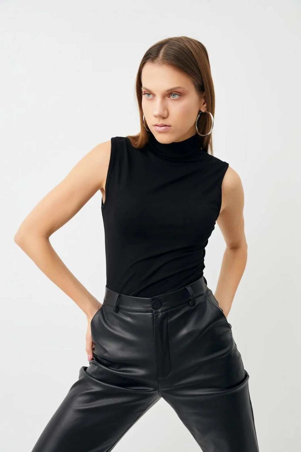 Penye Kumaş Boğazlı Badi - Siyah
