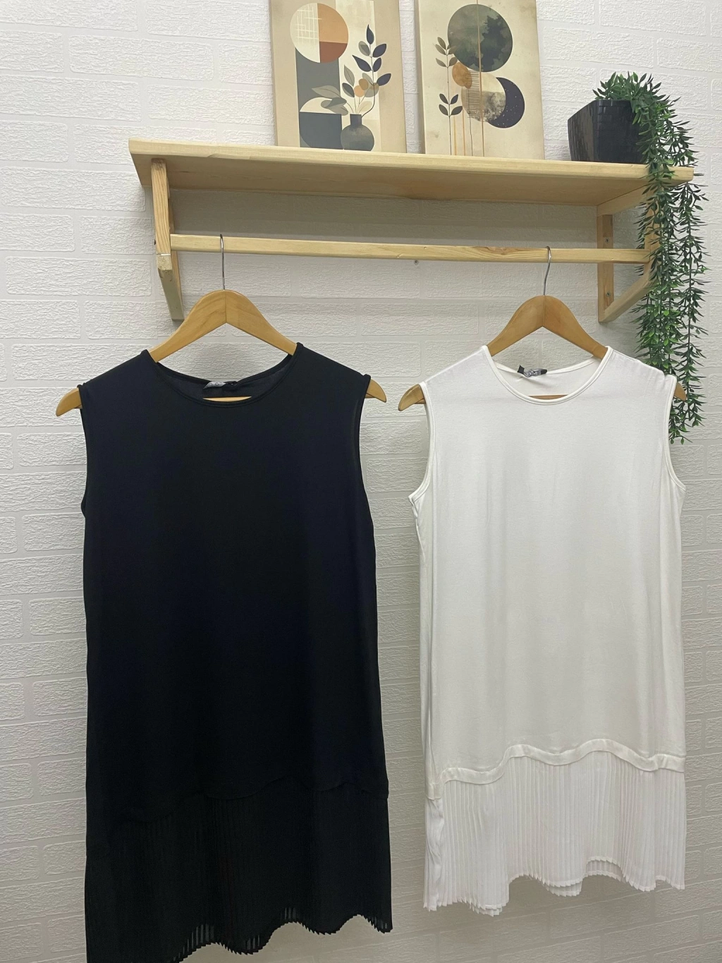 Eteği piliseli içlik ; Standart beden 36-44 beden arası uyumlu ; Boy 80cmdir ; Üst süprem penye kumaş alt pilise aerobin kumaştır ; Badi, Kazak, Tunik altlarında rahatlıkla kullanılır.; ; Esnek ve rahat yapısı vardır.