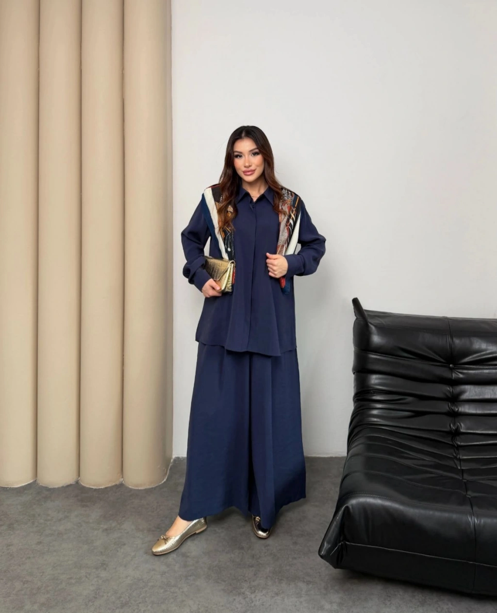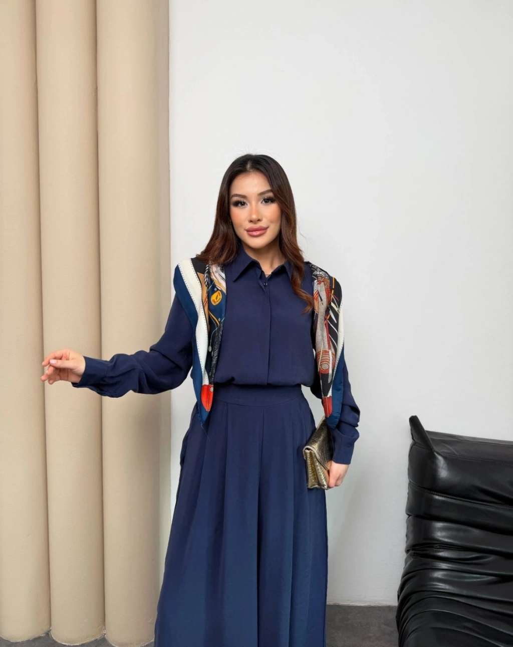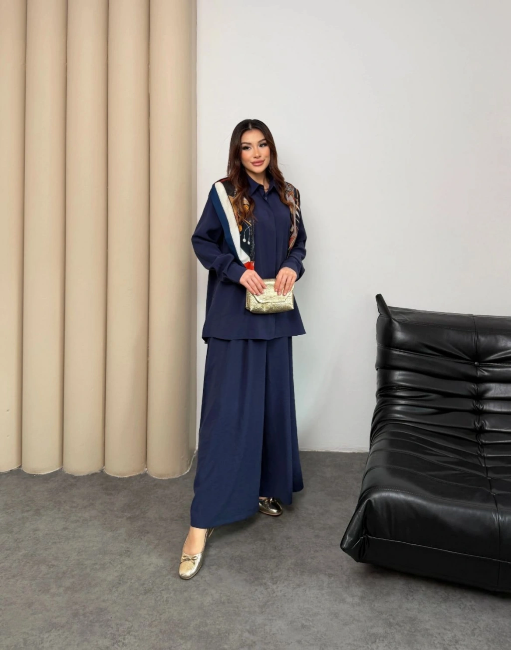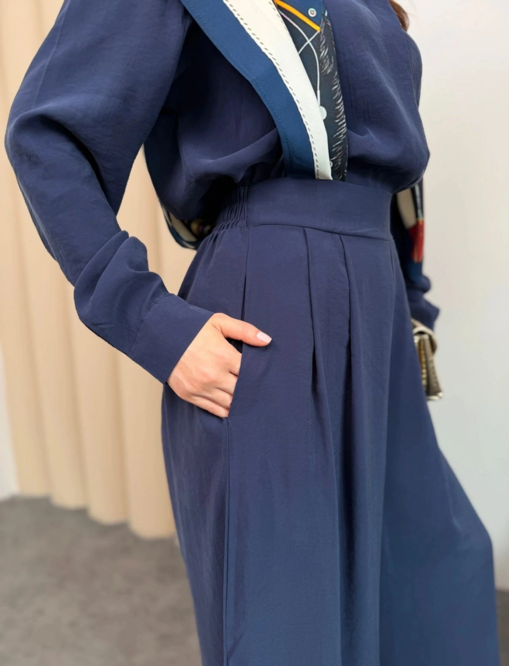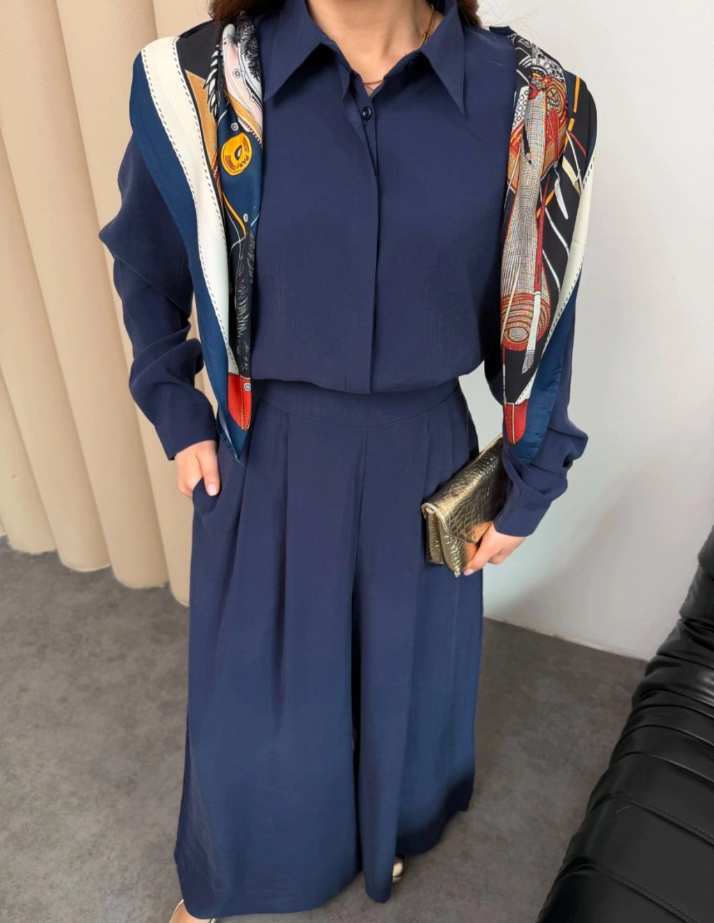 Sare Şal Detaylı Pantolonlu Takım - Lacivert