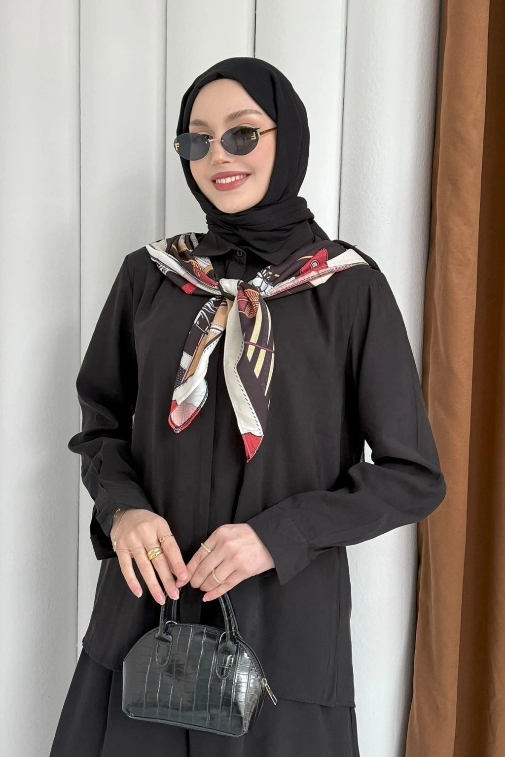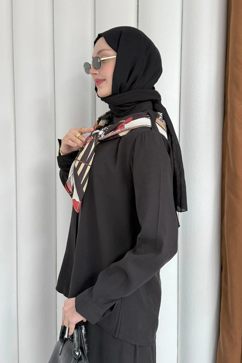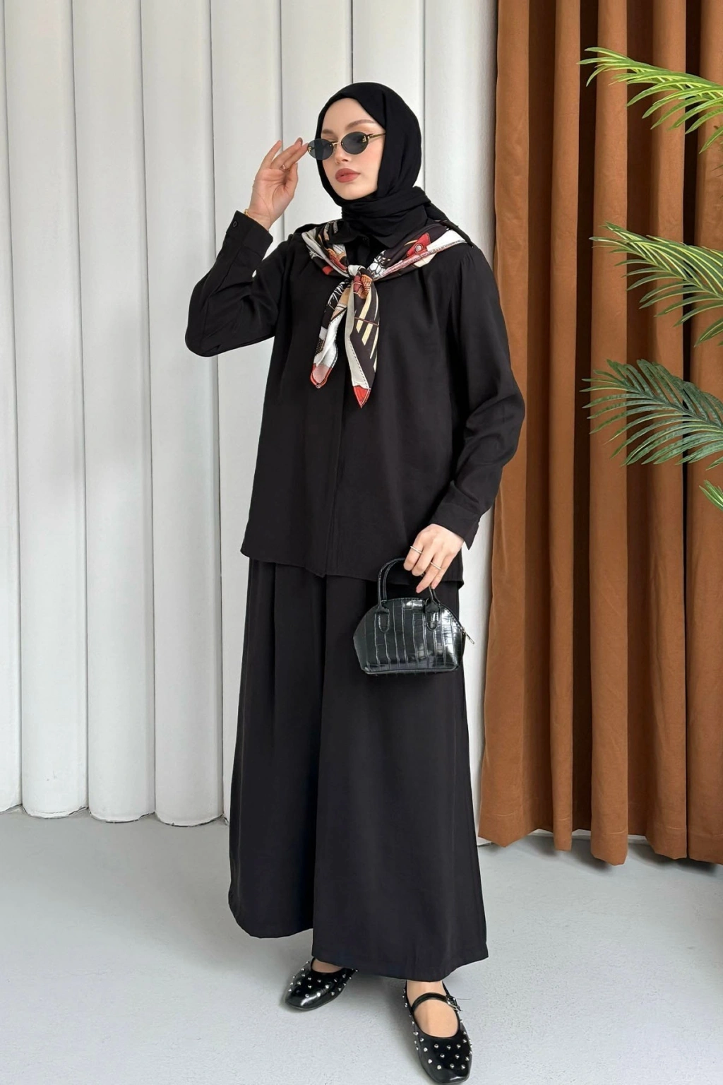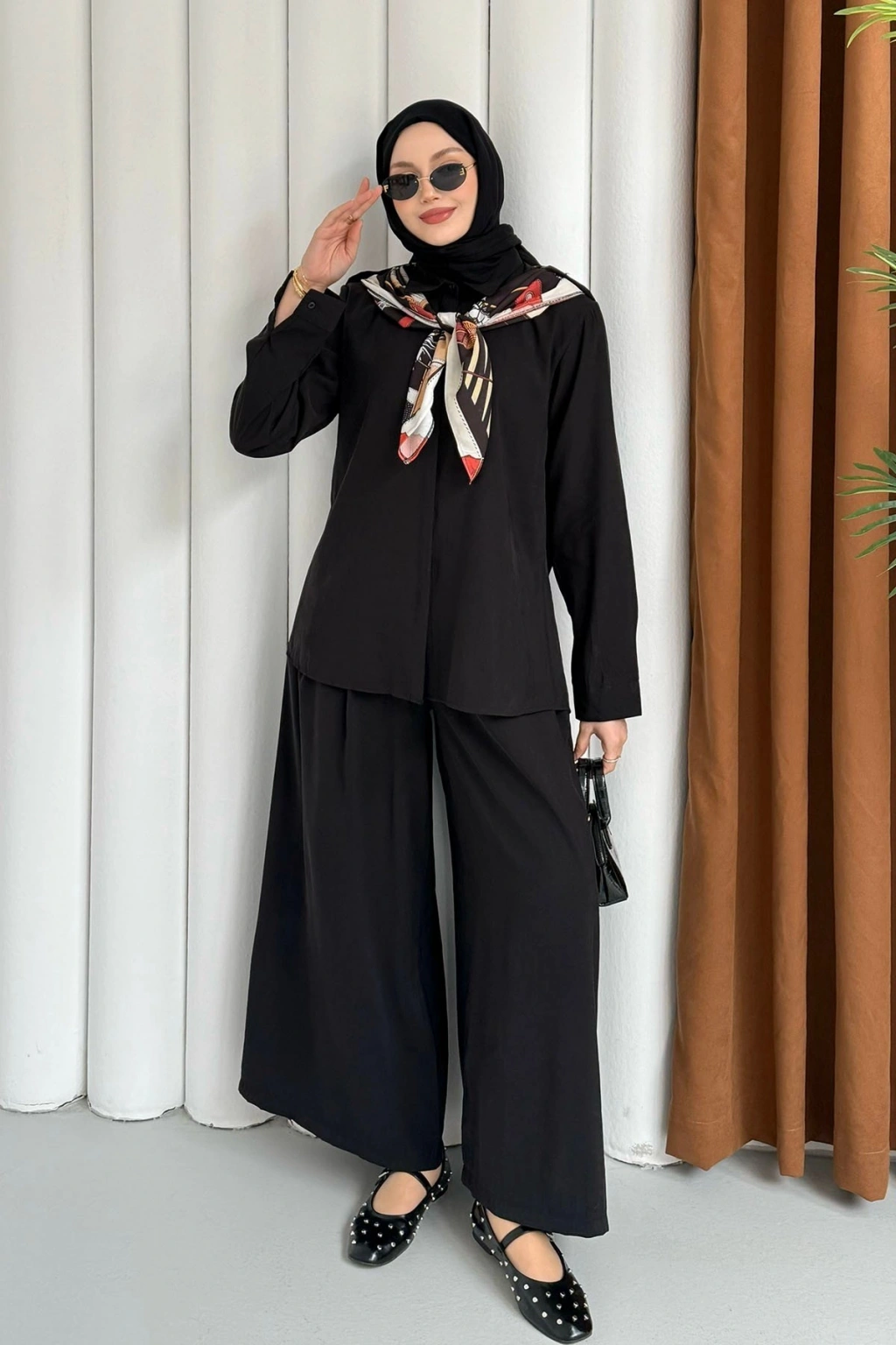Sare Şal Detaylı Pantolonlu Takım - Siyah